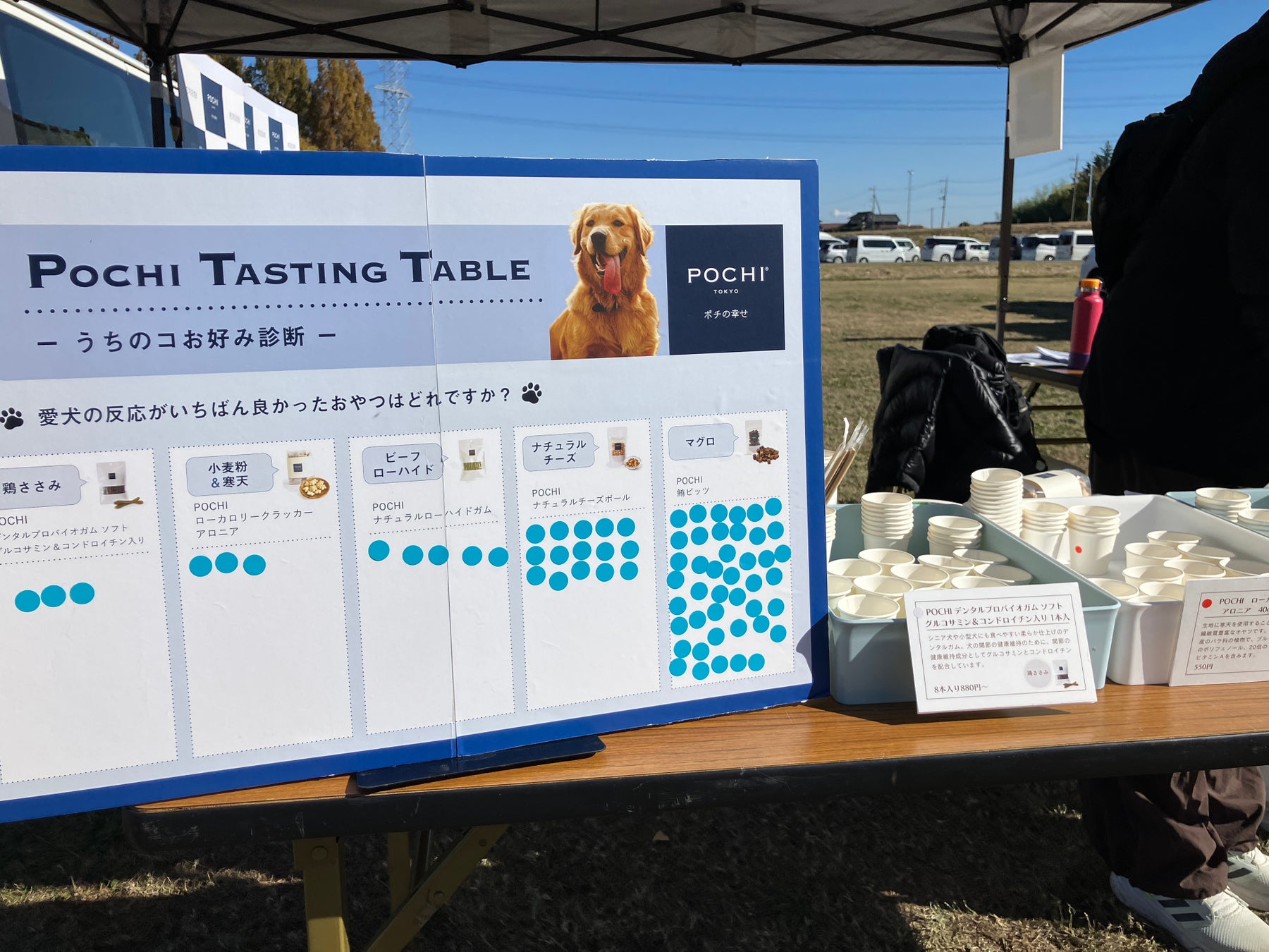 イベント当日は青空の下、344名、231頭が一同に集まり大盛況でした。POCHIでは、来場者の皆さん全員に『RETRIEVER』と共同開発を進めてきた、中・大型犬用の総合栄養食『POCHI ミディアムラージブリード 3種のポルトリー』1.8kgの無料クーポンをプレゼントしました。
