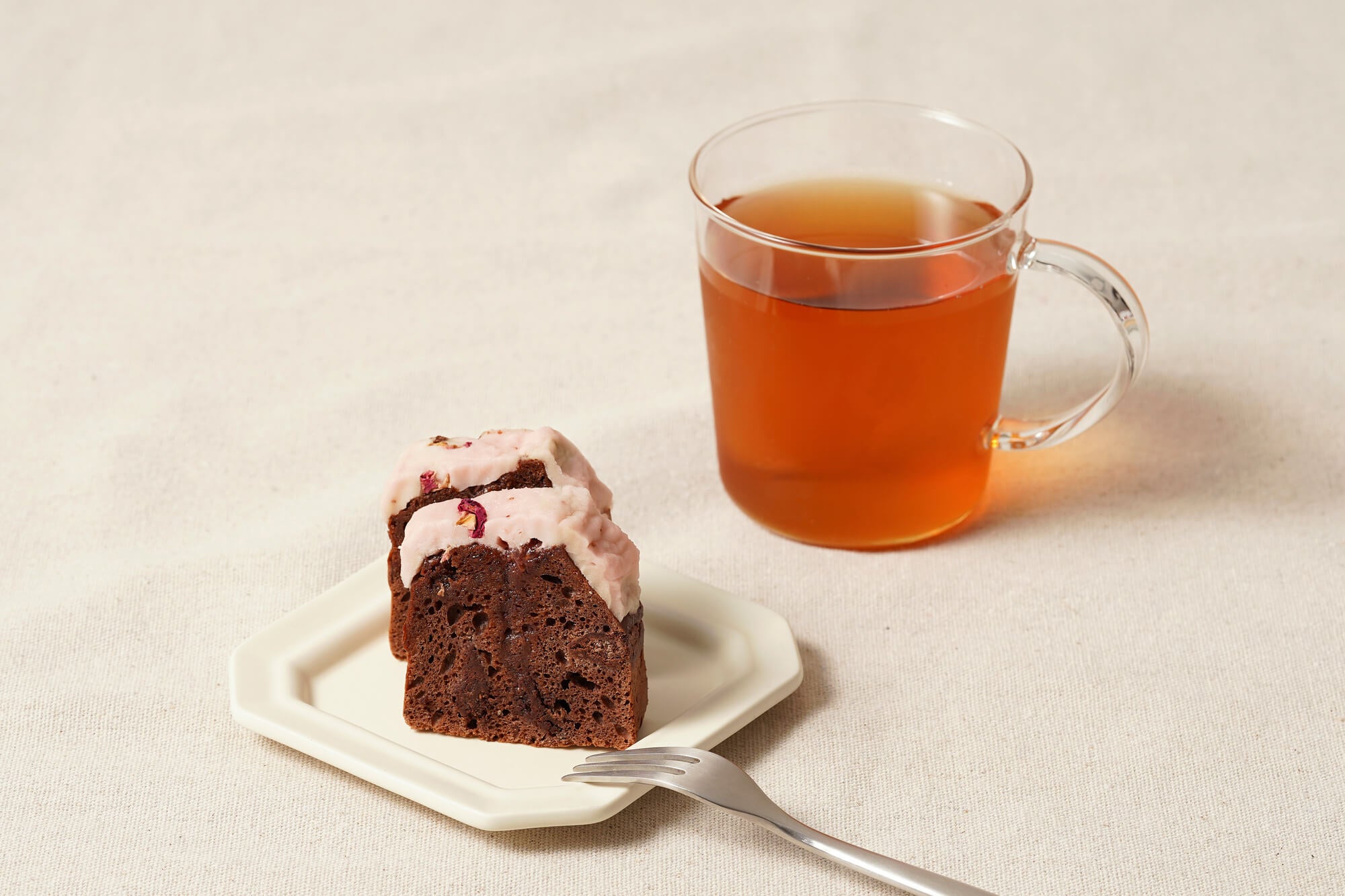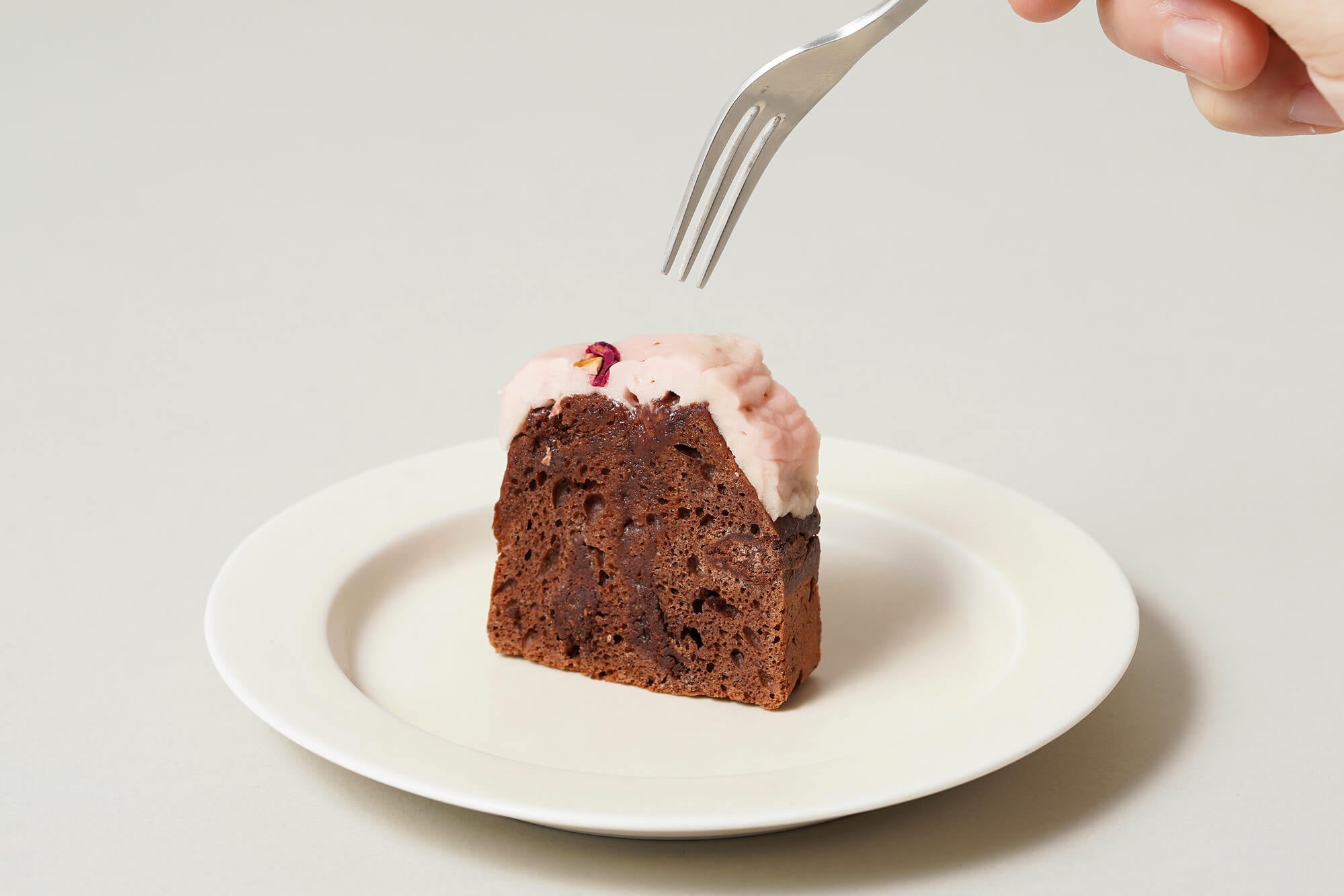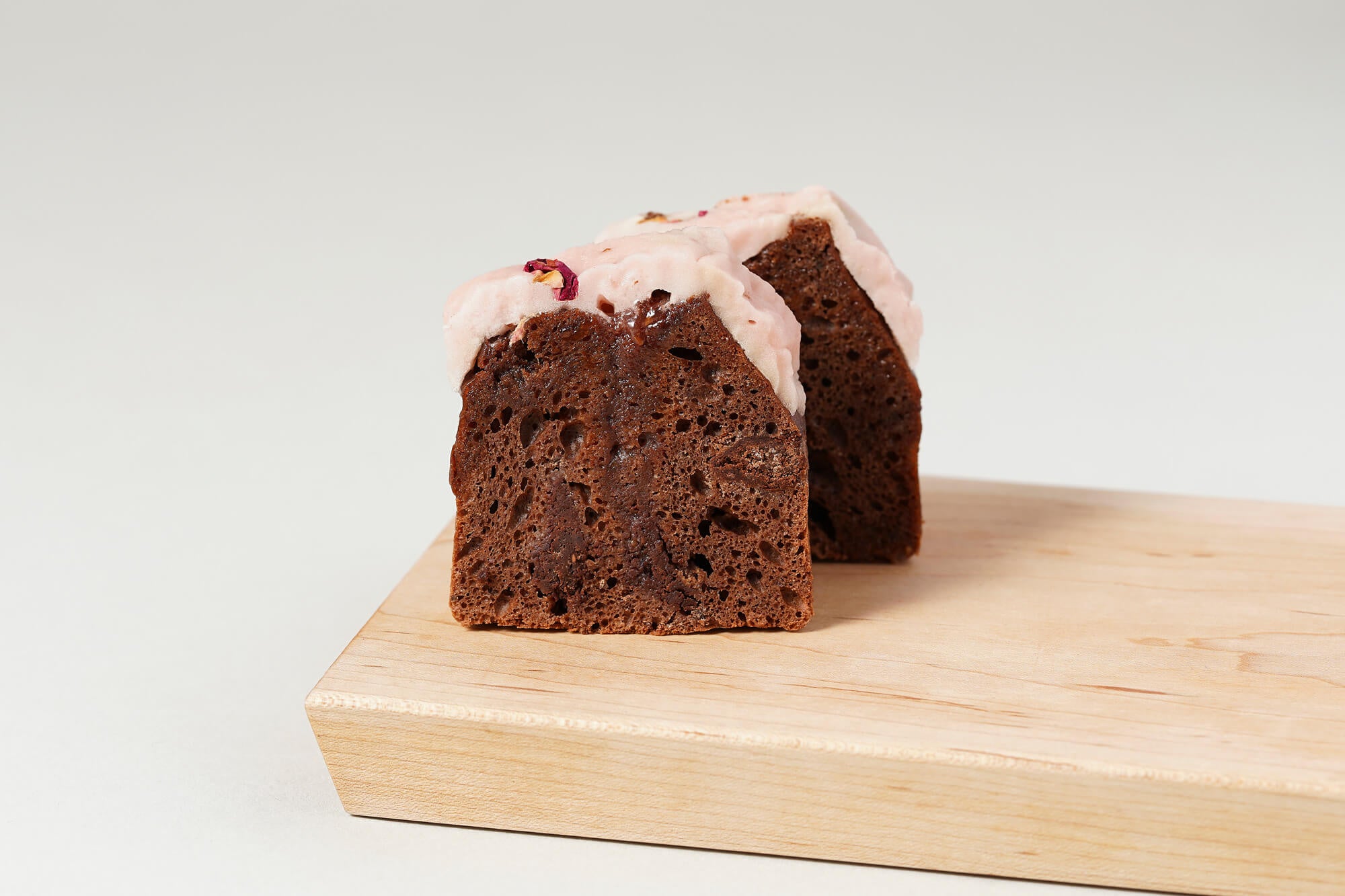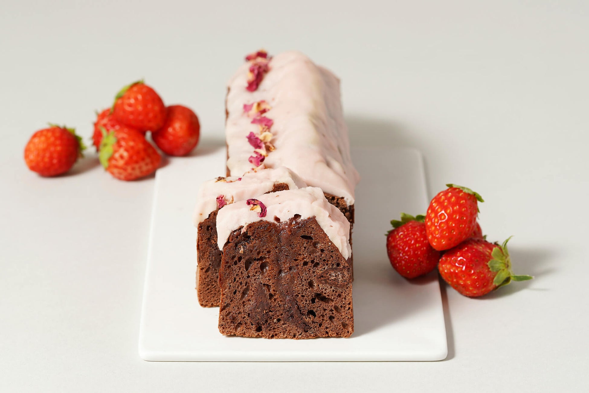 代々木上原店と麻布台ヒルズ店限定で販売中の「ガトーショコラ ソフト」は、しっとりした食感の焼き菓子タイプのガトーショコラです。日持ちするため、お手土産など贈答用にもご好評いただいています。 季節限定で苺を使った限定バージョンをご用意しました。