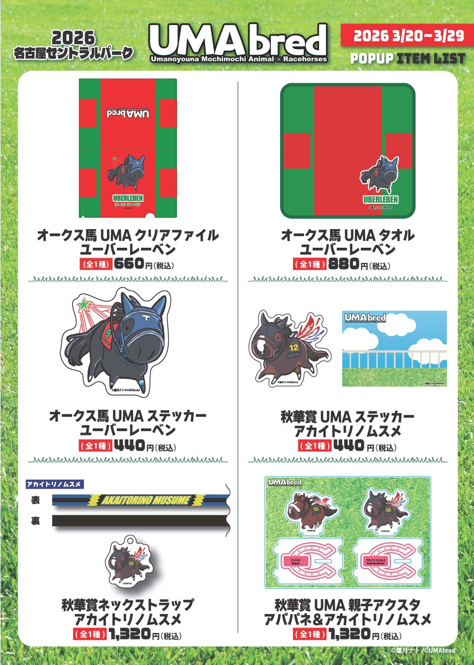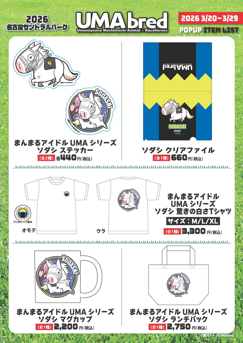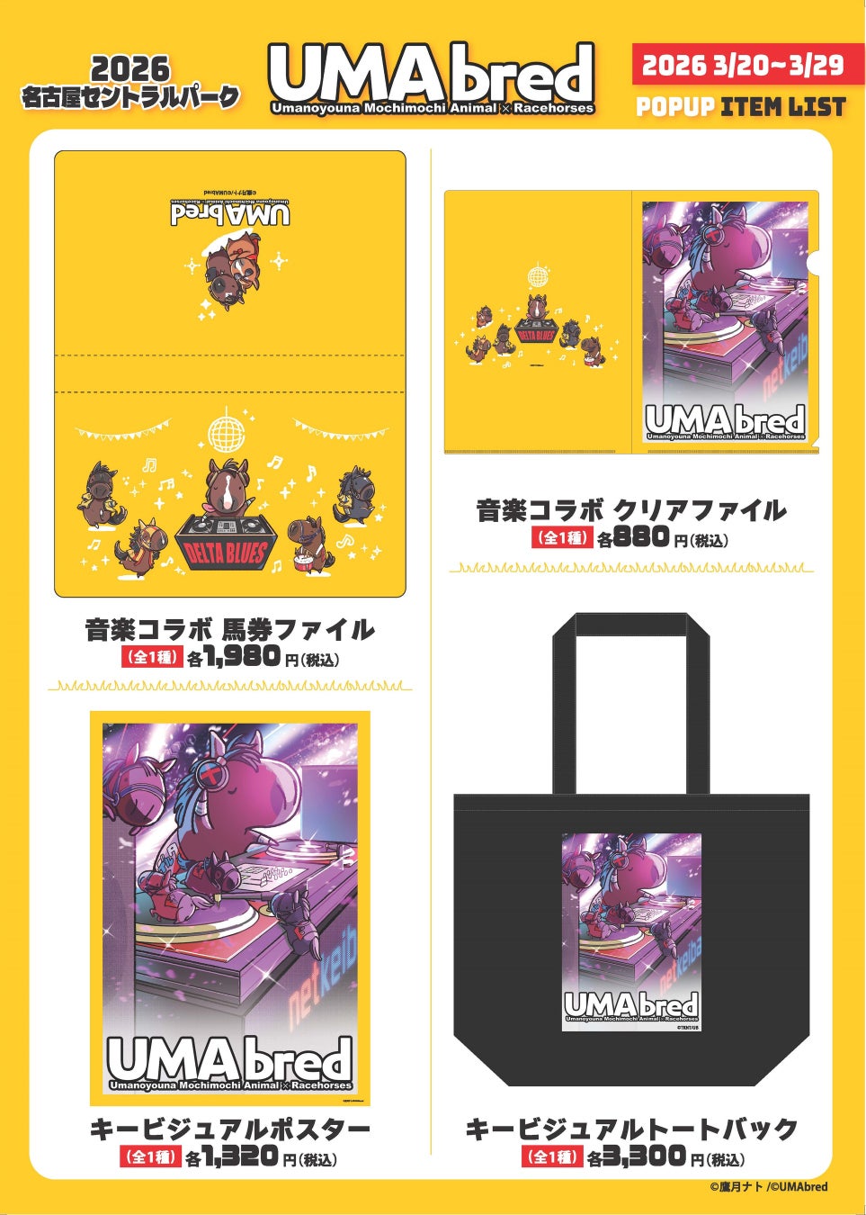 実在の競走馬・引退馬を「UMA」(ウマのようなモチモチアニマル)として描きおろすグッズブランド「UMAbred」は3/20(金・祝)~3/29(日)の日程で名古屋セントラルパーク イベントスペースにてPOPUPを実施いたします。