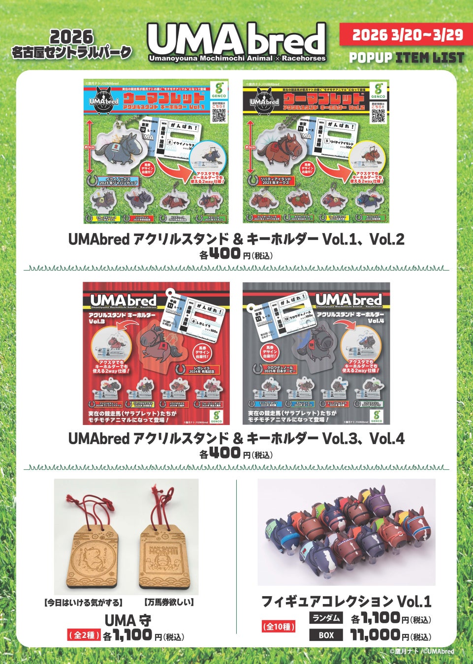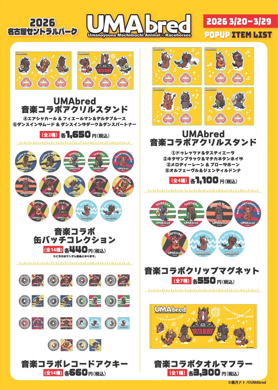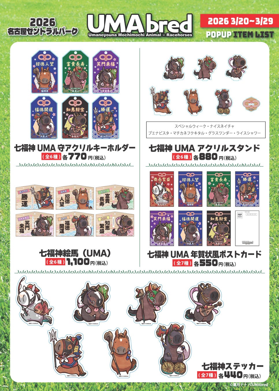 実在の競走馬・引退馬を「UMA」(ウマのようなモチモチアニマル)として描きおろすグッズブランド「UMAbred」は3/20(金・祝)~3/29(日)の日程で名古屋セントラルパーク イベントスペースにてPOPUPを実施いたします。