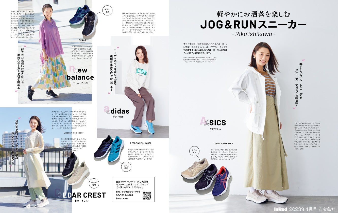 「シュープラザ」春の新作スニーカーを発売。ファッション誌「InRed」では、石川梨華さんがJOG&RUN スタイルコーデを提案。