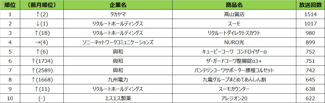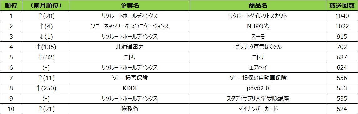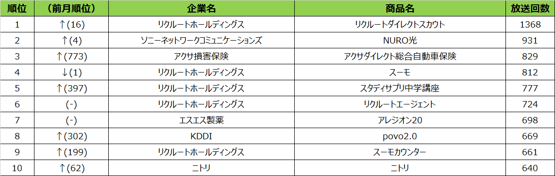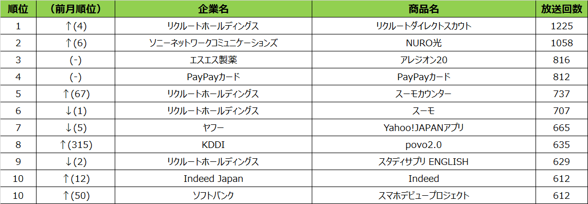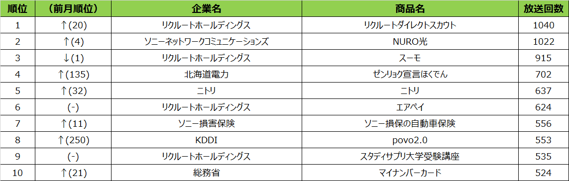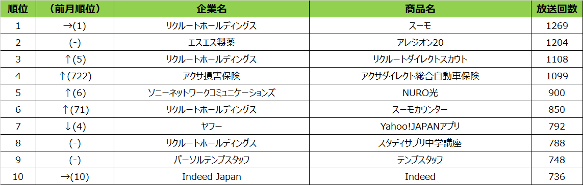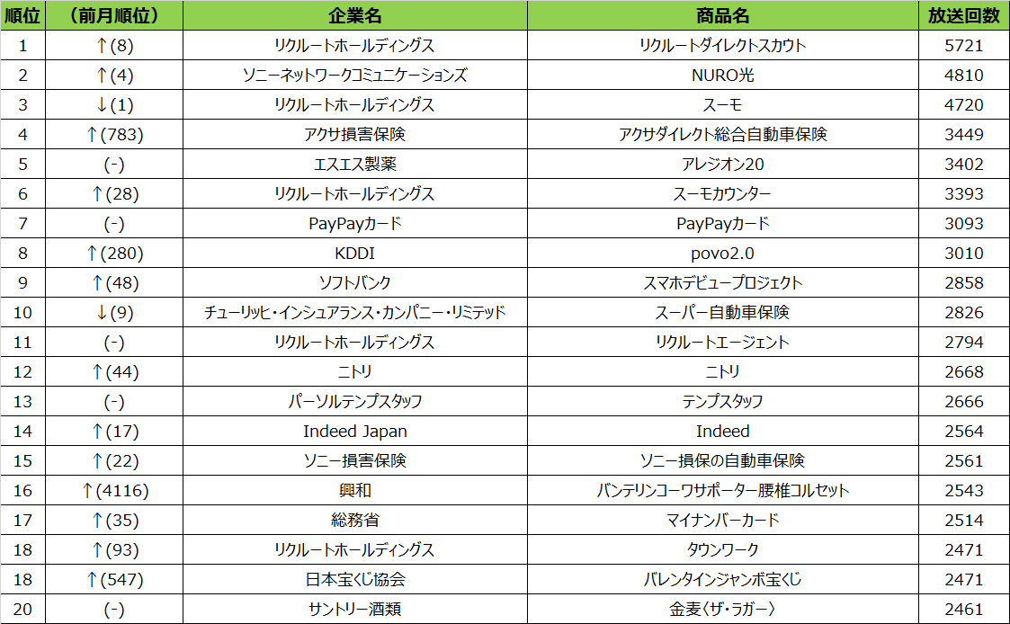 2022年2月度テレビCM放送回数ランキング発表~リクルートホールディングスが3ヶ月連続1位~