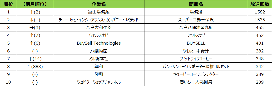 - 2022年2月度 商品別テレビCM放送回数(全国地上波25局、BS放送6局合計)