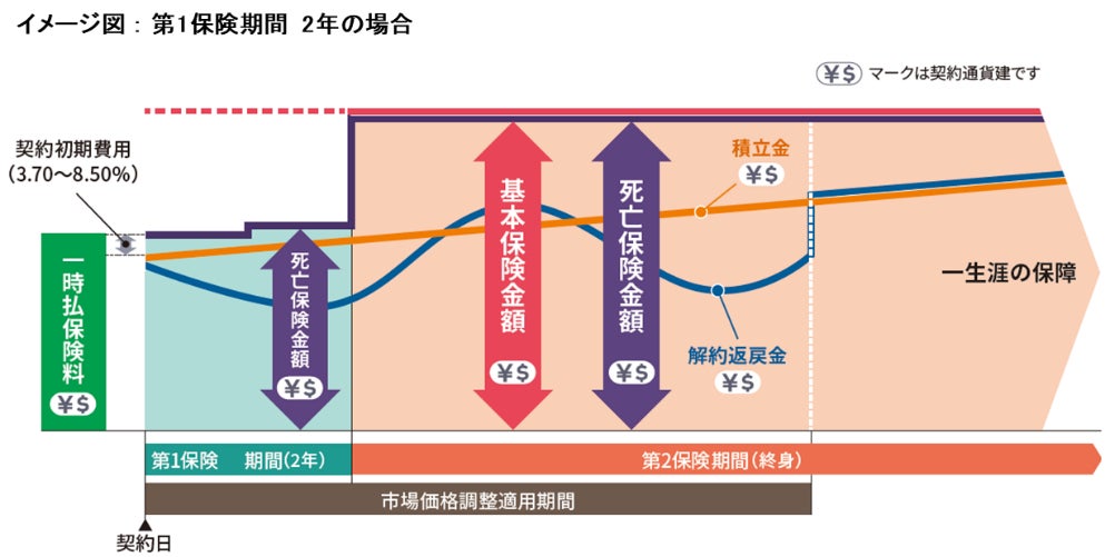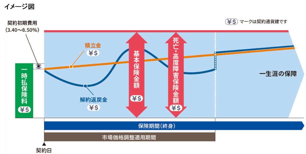 この保険は、解約時の市場金利、為替相場の変動などの影響を受けるため、元本割れする可能性が あります。これらのリスクは契約者または受取人が負います。
