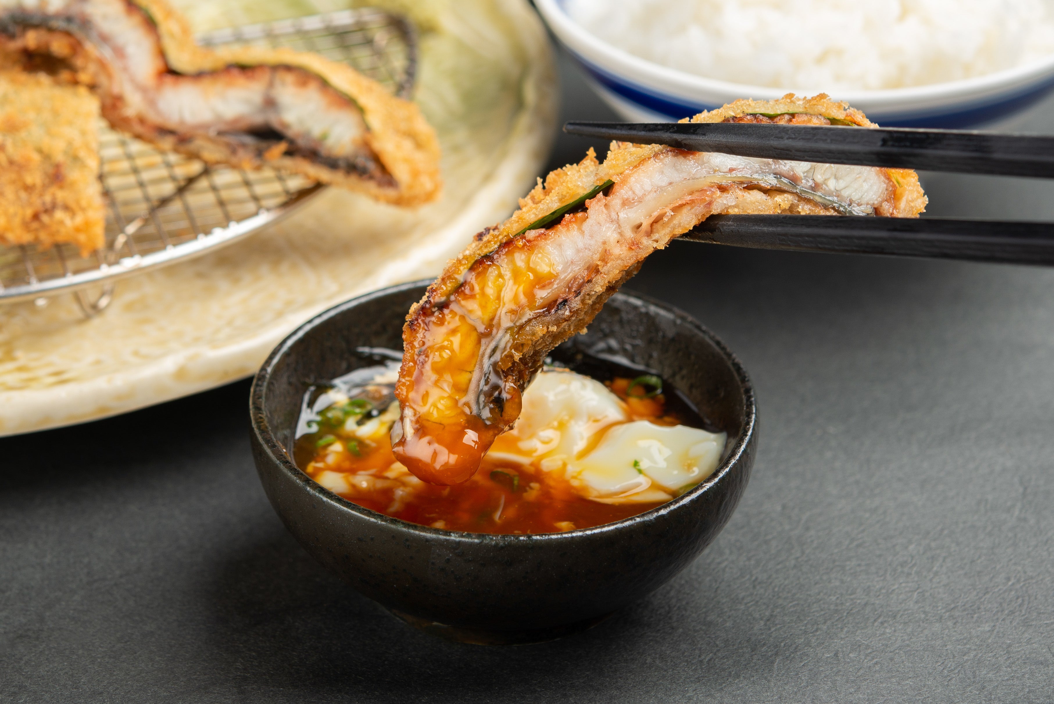 サクサクの衣に包まれた鰻の身は揚げることでよりふっくらと、そして香ばしさもUP!大葉で巻いて揚げることで重たすぎない、さっぱりとした味わいに仕上げました。