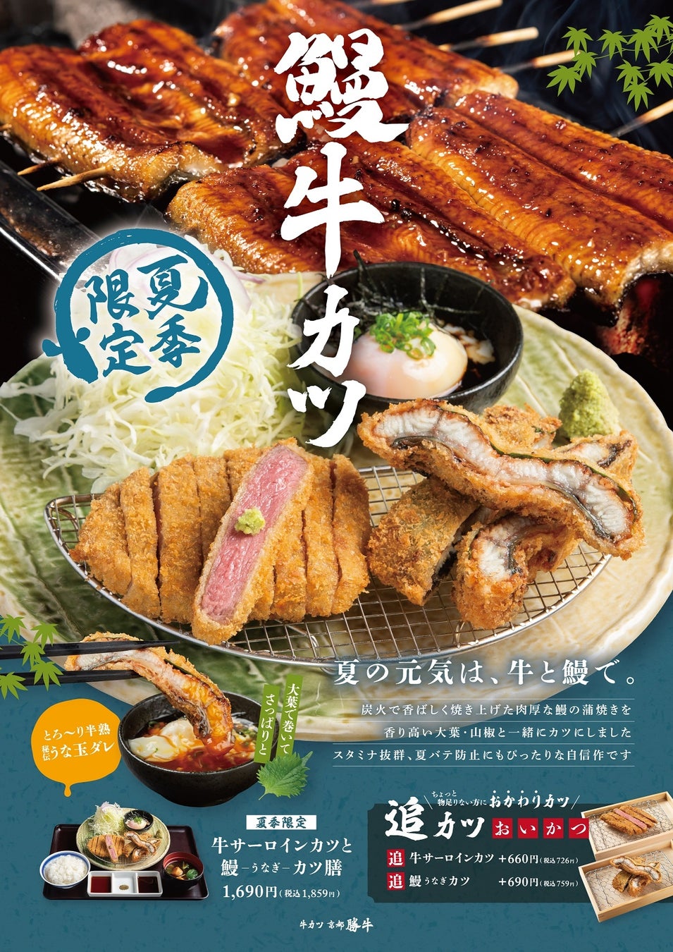 贅沢な「牛カツと鰻カツ」の組み合わせは、スタミナ抜群・夏バテ防止にもぴったりな自信作です。