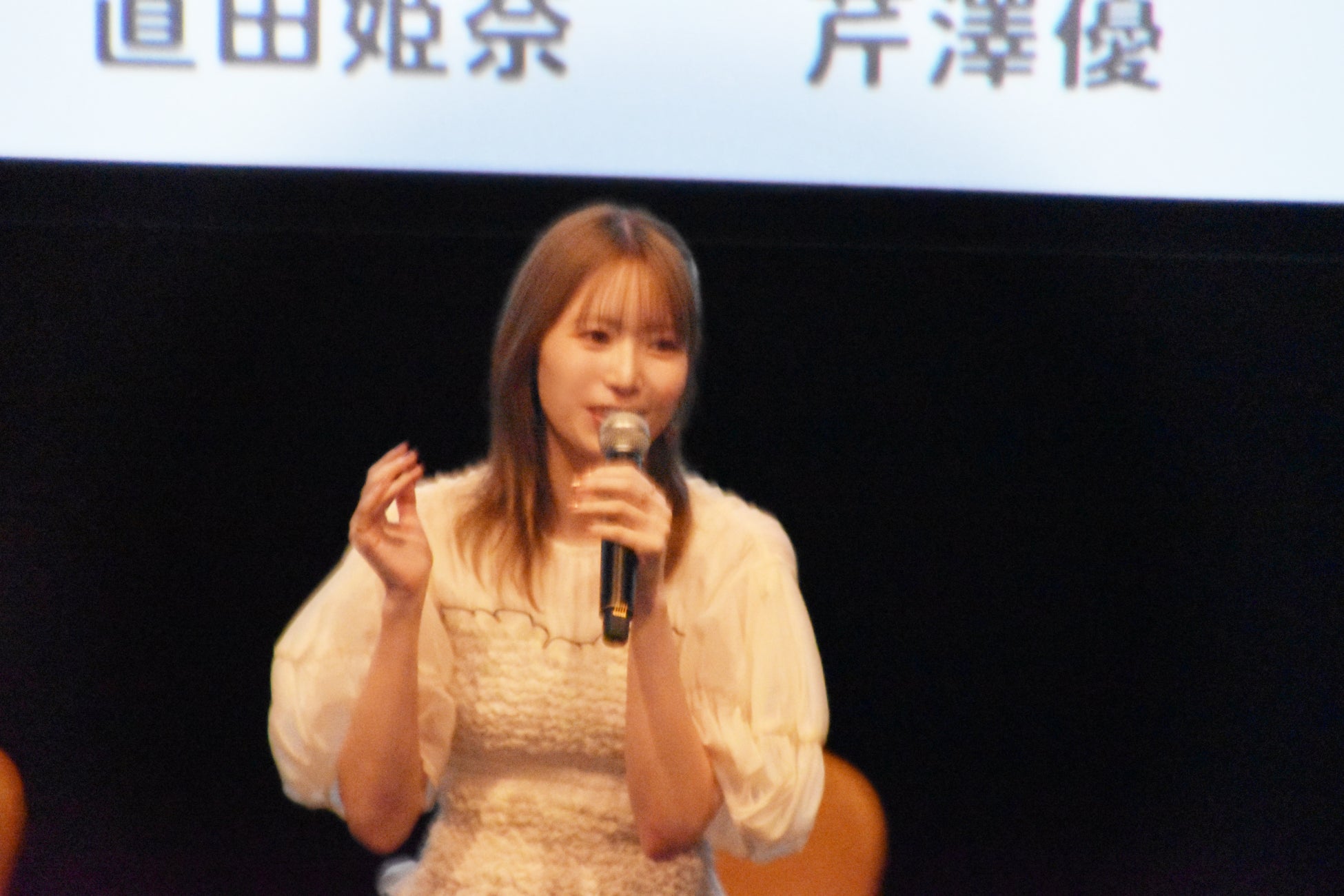 まずは、ご自身が演じられたキャラクターについてどう感じたか、また、印象的だったシーンはどこだったか?という質問に、直田姫奈さんは、アフレコ現場での裏話を交えつつ、「宇宙に行ってるアロマちゃんが印象的でした」「アロマちゃん、イイ身体でした」と振り返っていただきました。
