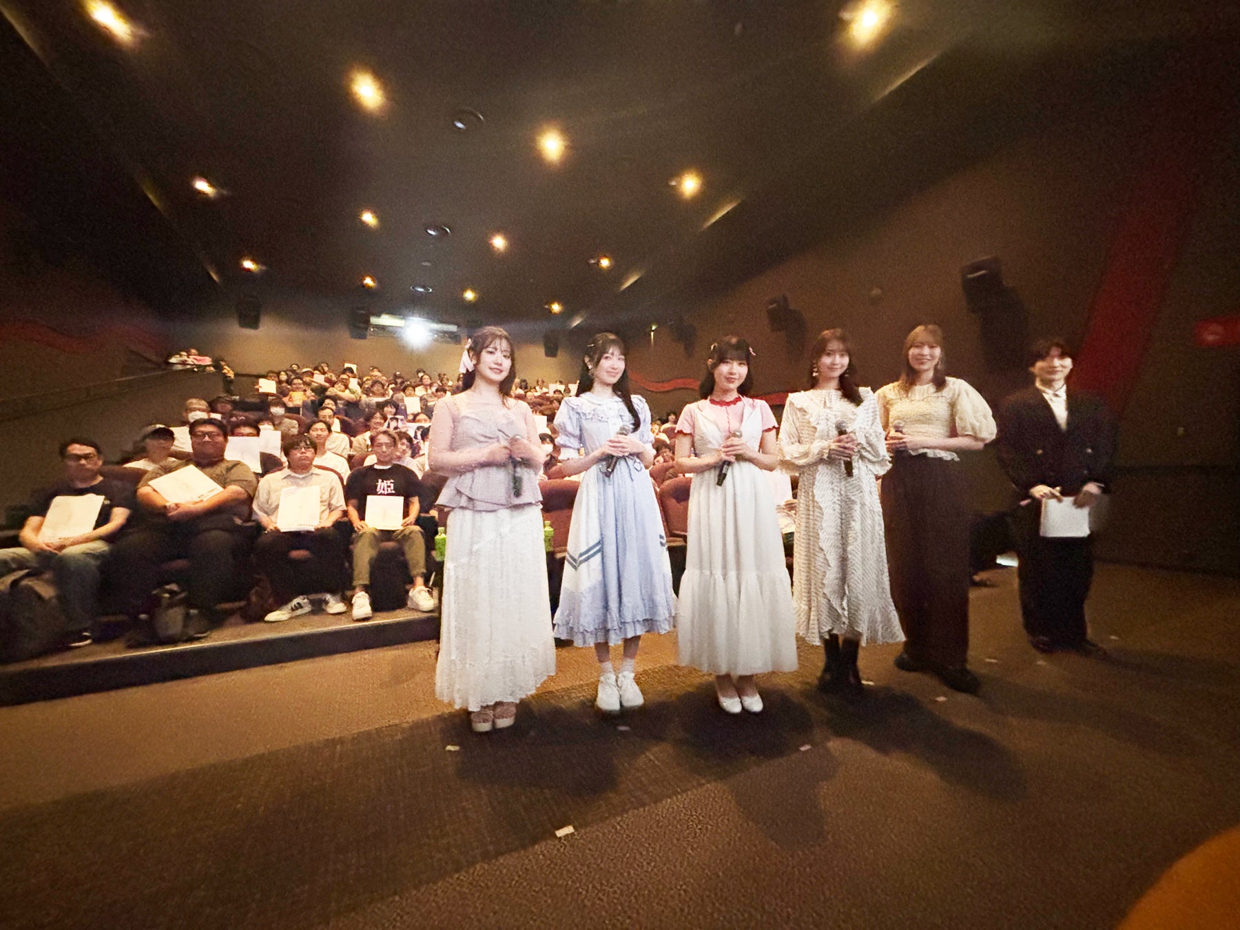 本編第1話と第2話の完全デレギュラ版を上映が終わると、本作の主人公である小手指向陽を演じた安田陸矢さんの進行により、直田姫奈さん、芹澤優さん、会沢紗弥さん、村上まなつさん、青木瑠璃子さんが登壇。