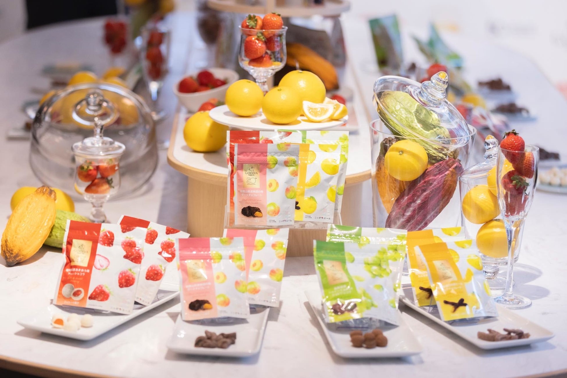 また、本発表会ではプロジェクトの限定商品について、ゴディバ ジャパン エグゼクティブシェフ・ショコラティエ/パティシエ ヤニック・シュヴォローよりご紹介。3月30日(水)より、全国のゴディバ限定ショップにて発売する「福岡県産あまおう苺 ジュレショコラ」、「長野県産シャインマスカット ジュレショコラ」、 「宮崎県産日向夏ピール ミルクチョコレート」、 「和歌山県産梅酒の梅 ダークチョコレート」の4商品を初披露しました。