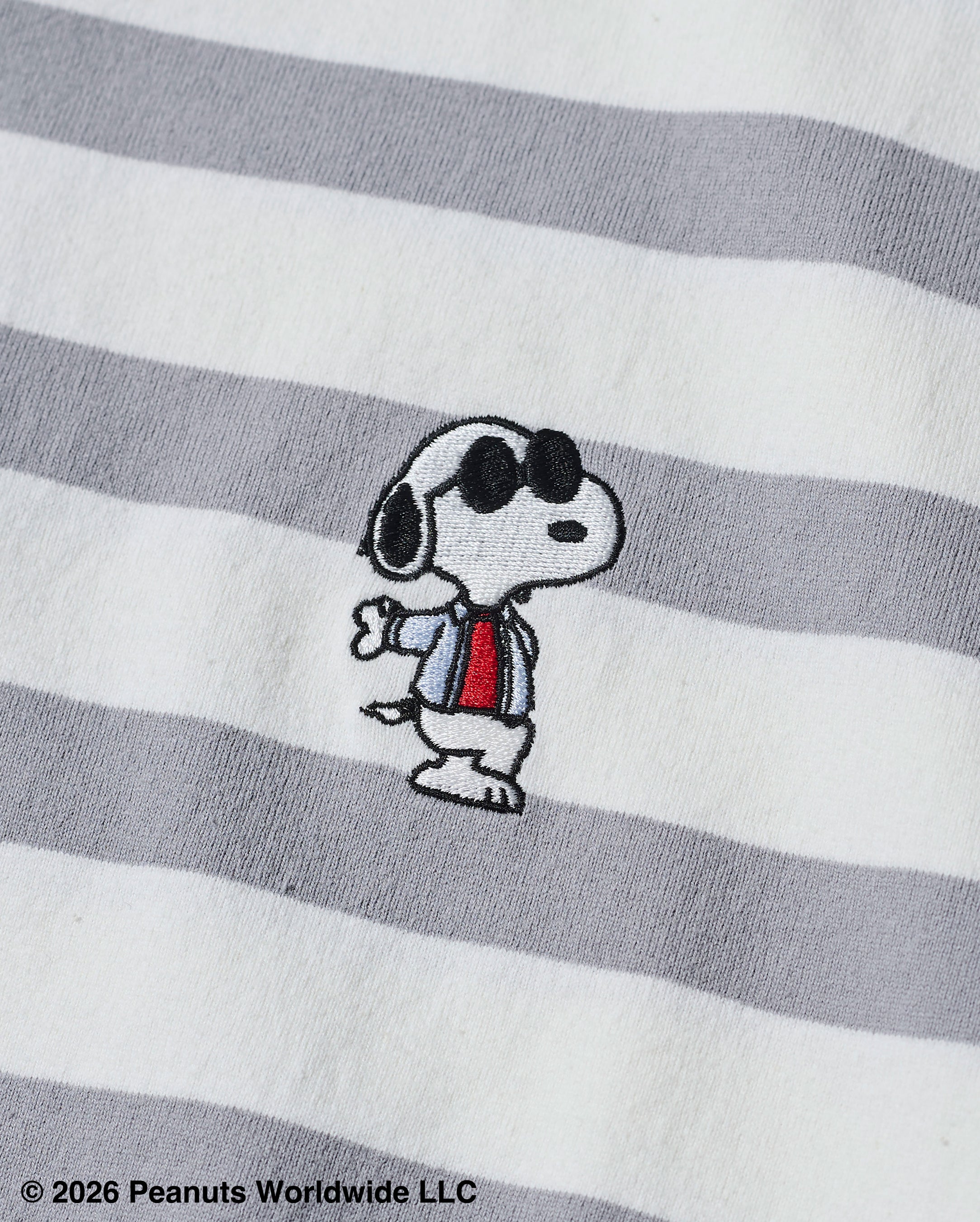 スヌーピーやウッドストック、チャーリー・ブラウンといったキャラクターたちは、ドッグハウスのまわりで集ったり、スケートボードに乗ったりと、より自由でリラックスしたムードで登場。クラシックなトラッドアイテムに、遊び心のあるモチーフや刺繍、プリントを加えることで、大人が楽しめるキャラクター表現に昇華しています。