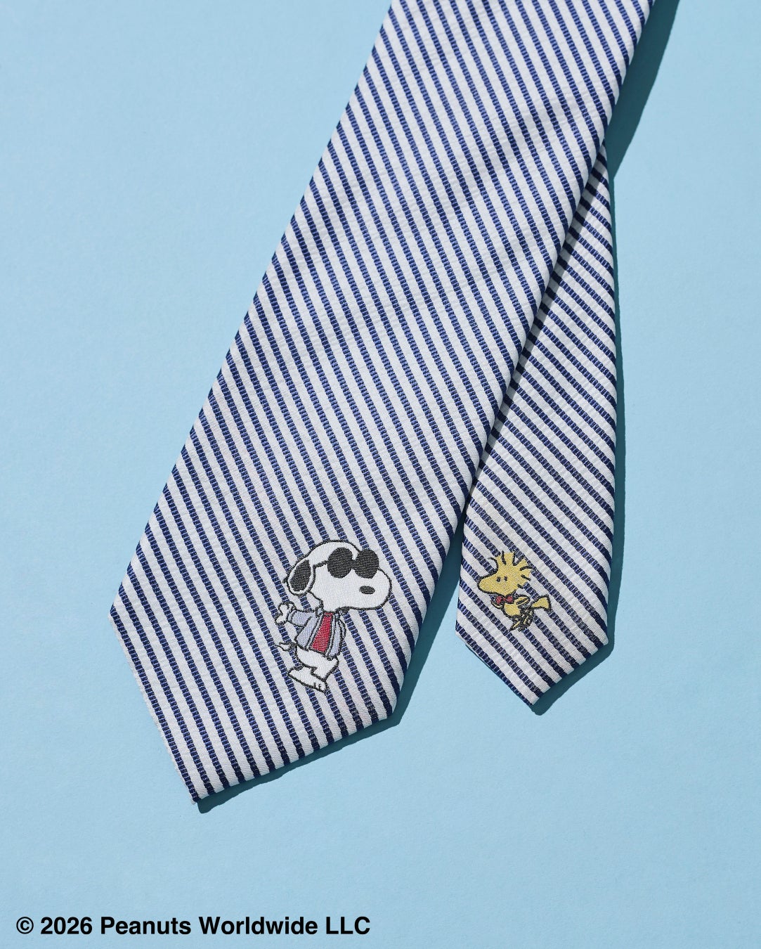 大剣にジョー・クール、小剣にウッドストックをジャガードであしらい、さりげない遊び心をプラスしました。涼感のある素材感で、春夏のトラッドスタイルに程よい抜け感を演出します。