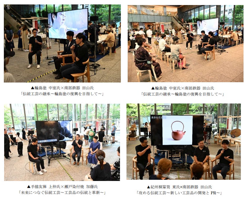 8月24日(土)には、3回のトークショーが開催されました。トークショーは立ち見が出るほどで、50名以上の参加者が、「伝統工芸の革新」や「輪島塗の復興」など伝統工芸の職人同士のトークに聞き入っていました。