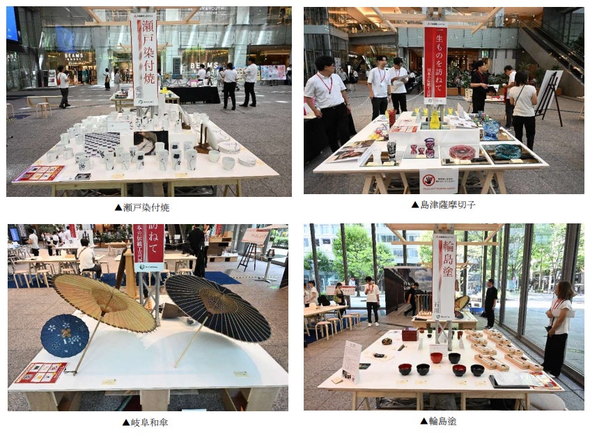 展示品:【岩手県】南部鉄器、【石川県】輪島塗、【岐阜県】和傘、【愛知県】瀬戸染付焼、