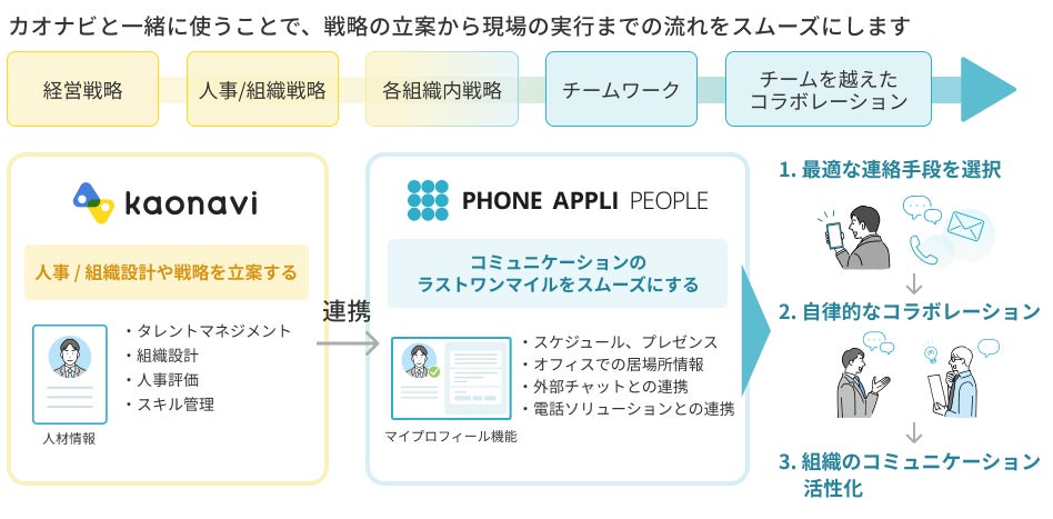 こうした状況に対応するため、株式会社カオナビとPHONE APPLIは、それぞれの強みを活かし、人的資本経営のさらなる促進を目指し、今回の連携を実現しました。