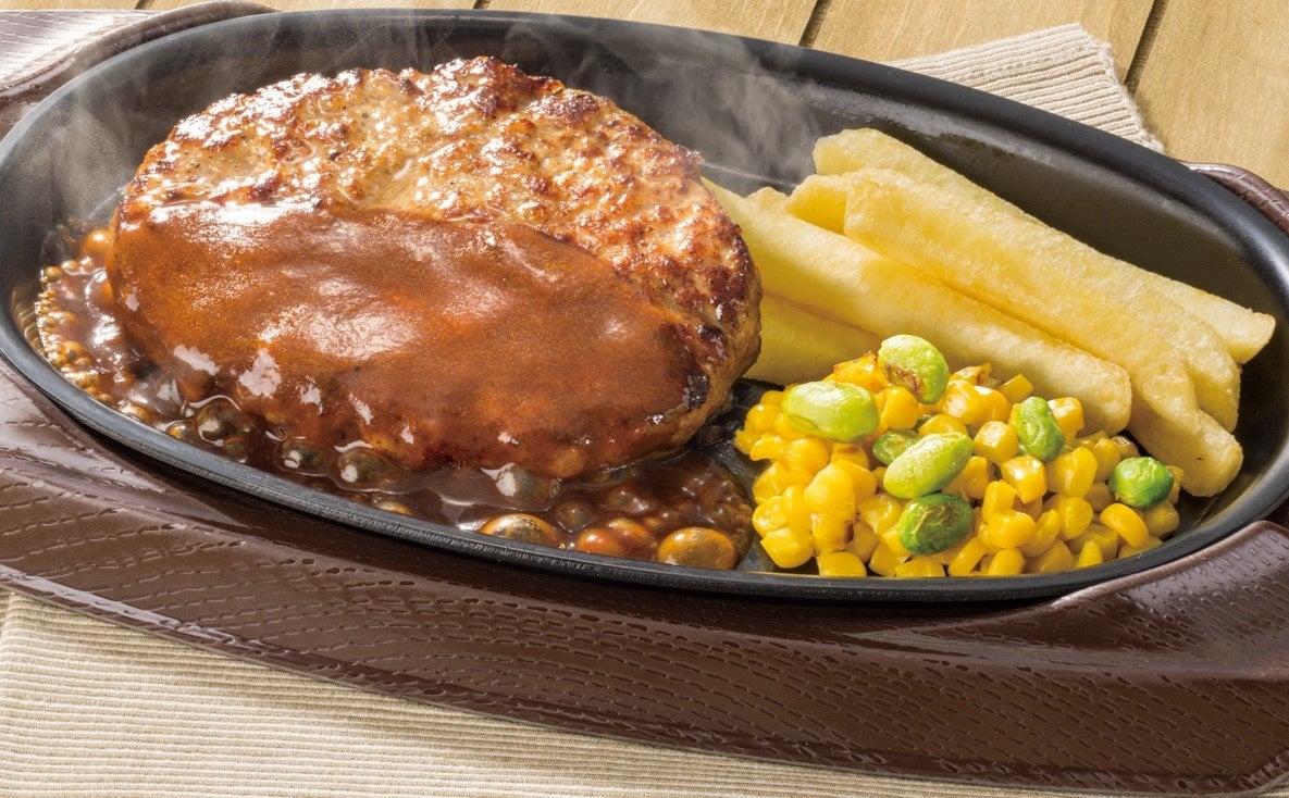 | ハンバーグステーキの美味しさのポイント ・ふっくらジューシー“肉in肉”製法 肉を肉で包み込むこだわり製法で、よりふっくらとジューシーに ・2種挽きと肉の配合比が決め手オリジナル黄金比 牛肉と豚肉を使用。粗挽き×細挽きのブレンドで肉感と旨味を実現 ・大満足サイズにボリュームアップ 新しくなったハンバーグステーキを存分に味わえます |