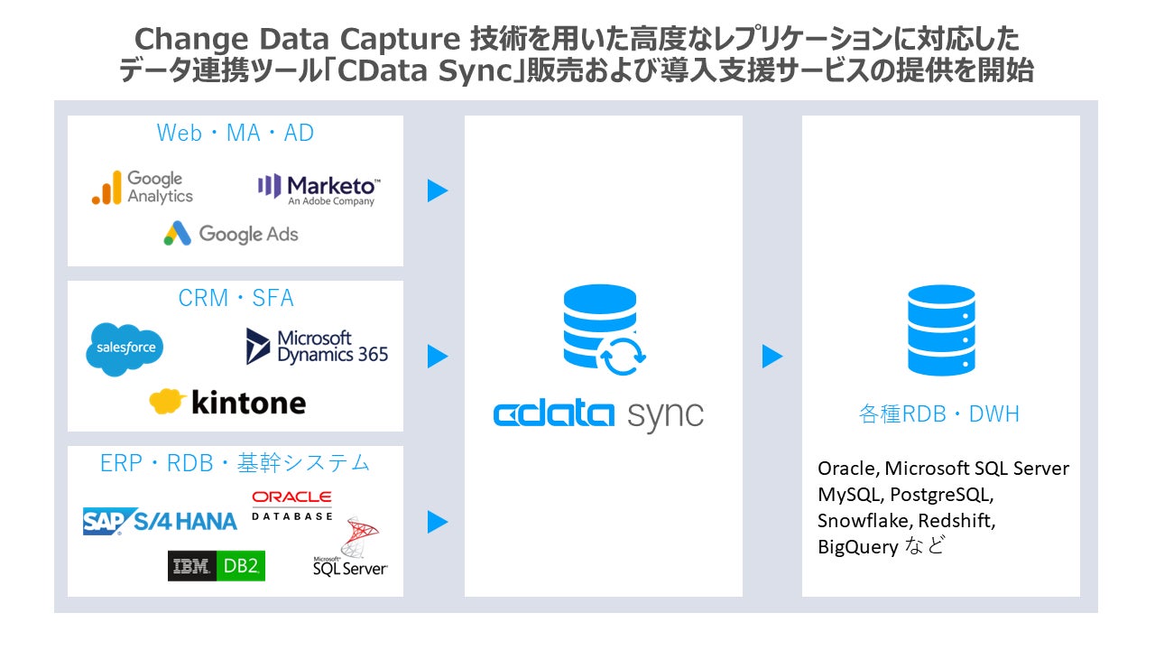 ~CData Sync の販売および導入支援サービスを11月26日から提供開始。オンプレミスからパブリッククラウドまで、マルチデータベース環境のデータ統合を実現~