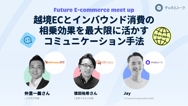 本セミナーでは、海外向けのWebマーケティングのエキスパートでもある「世界へボカン」、そしてサイトに来てからのコミュニケーションや体験を最適化できる「チャネルトーク」、そして実際に購入できるようにする「ジグザグ」の3社によるパネルディスカッション・参加者からのQ&Aにお答えします。盛り上がっている越境ECや訪日インバウンドの学びがあるイベントになっています。