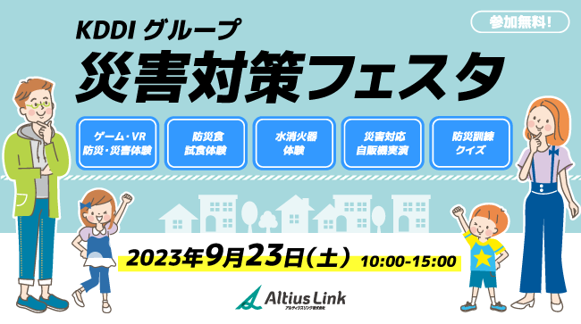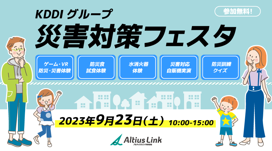 アルティウスリンクは、本イベントの開催を通じて、防災や災害対策にまつわる情報や知識をご家族やご友人に広げ、災害に強いまちづくりの一助となることを願っております。また、地域・企業とのパートナーシップを構築した社会活動、事業活動に取り組み、地域に根差した企業として、地域社会の発展と都市・まちづくり活動を継続してまいります。