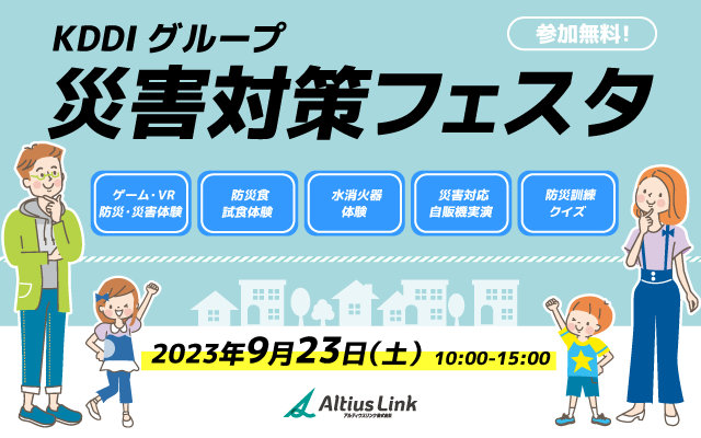 KDDIグループ 災害対策フェスタへ、ぜひ、ご家族、ご友人、近隣の皆さまとお越しください。