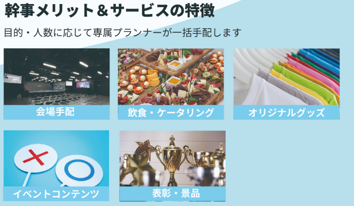 イベントの設計から当日の進行・運営、会場や備品の手配まで、まとめて対応可能です。