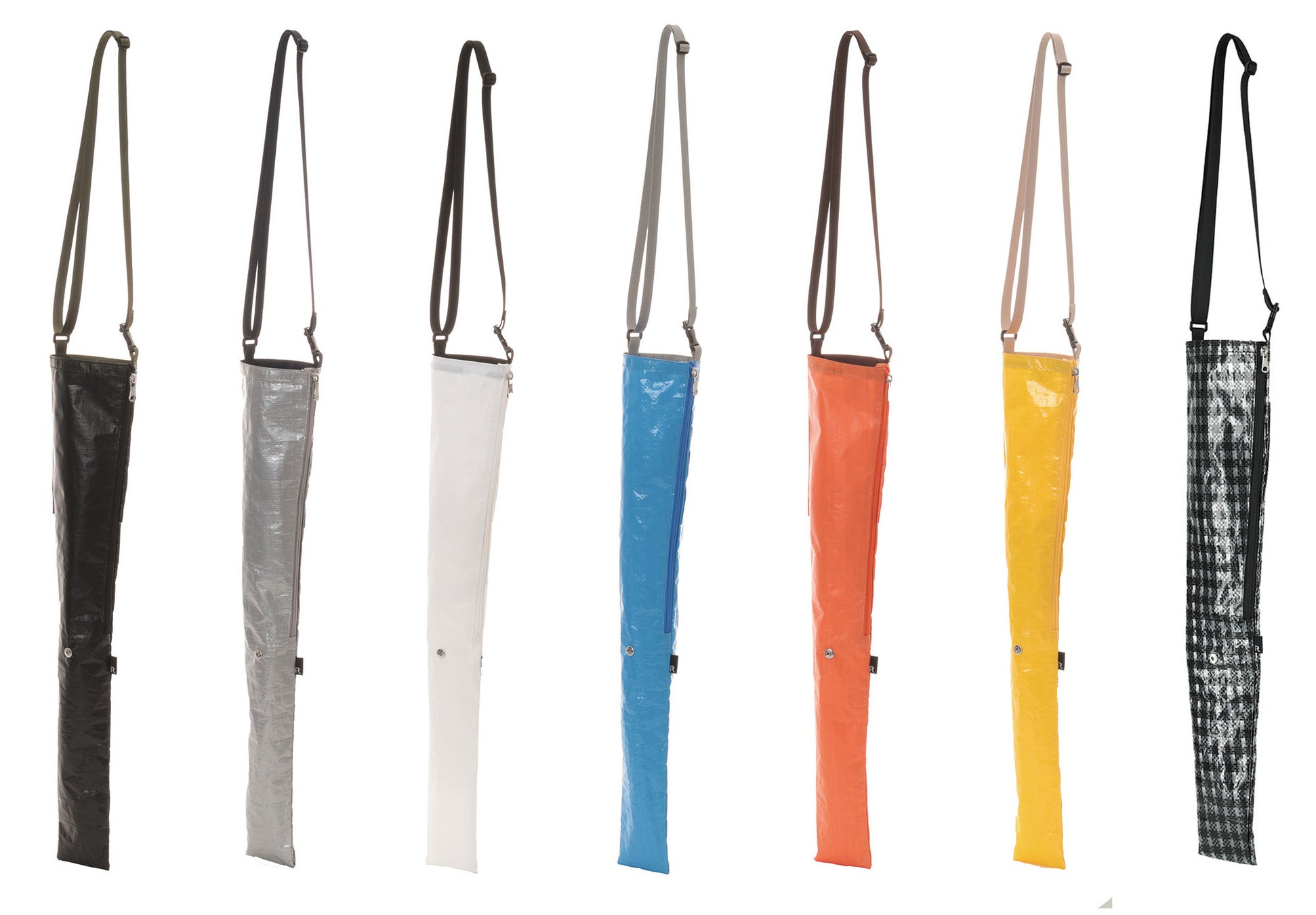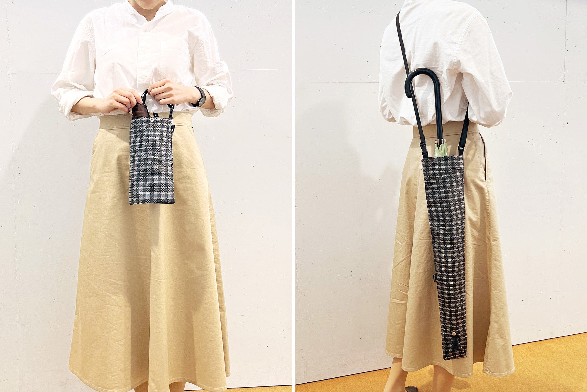 折り畳み傘用にはストラップとカラビナ、長傘用にはショルダーストラップが付いて、持ち運びが快適に。