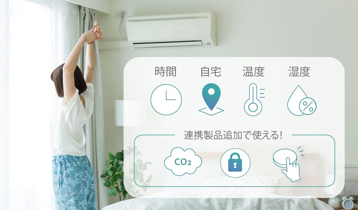 連携製品を追加すれば、CO2濃度やカギの開閉に応じた家電操作も可能。