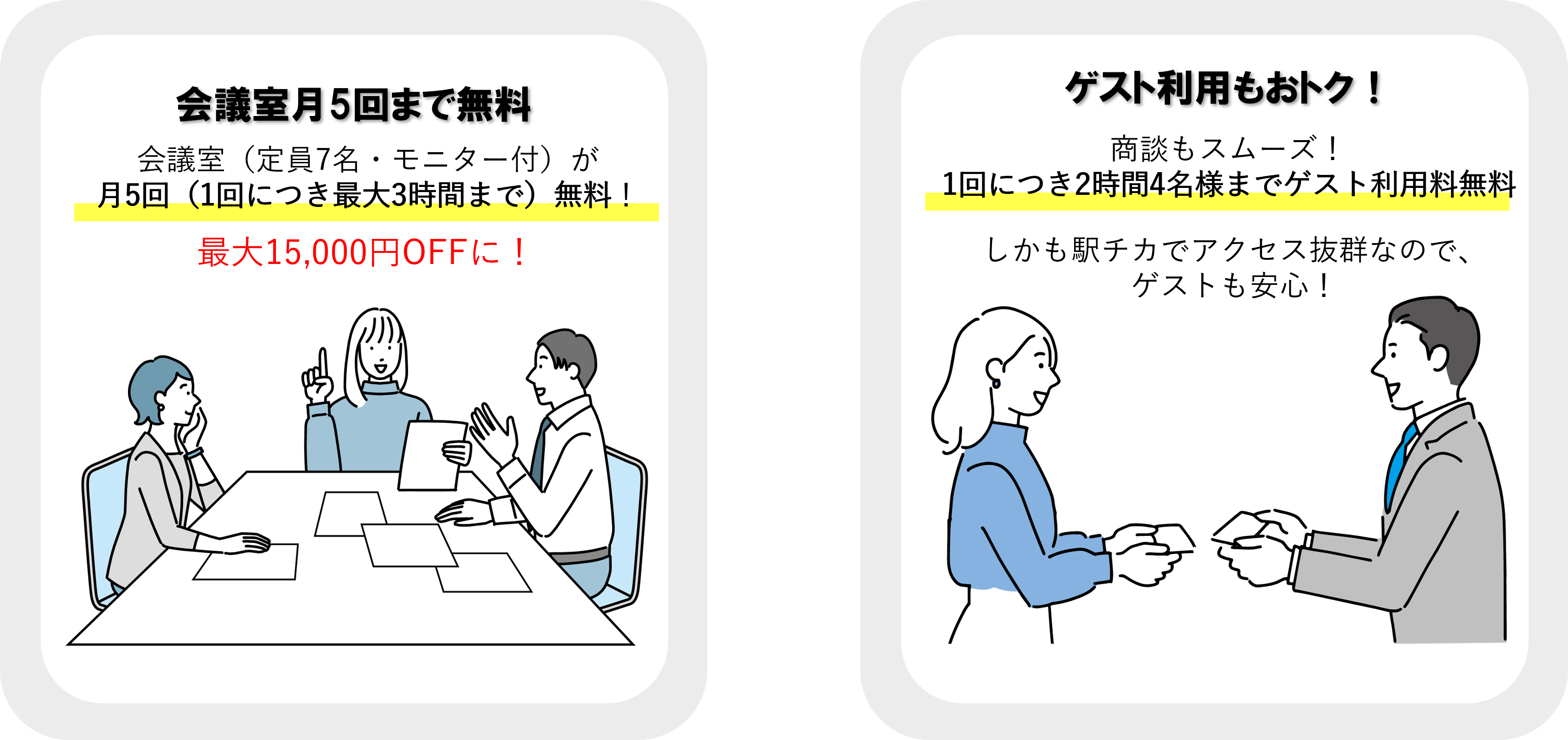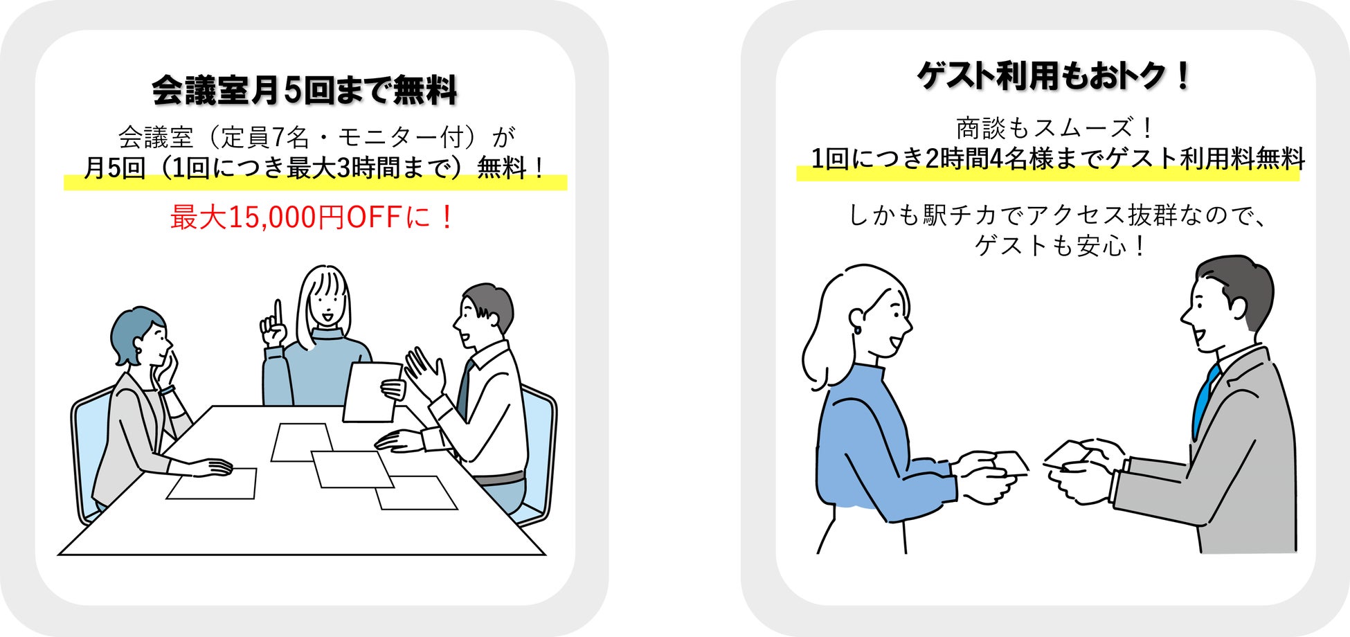 会議室やゲスト利用など、様々なシーンでおトクになります。