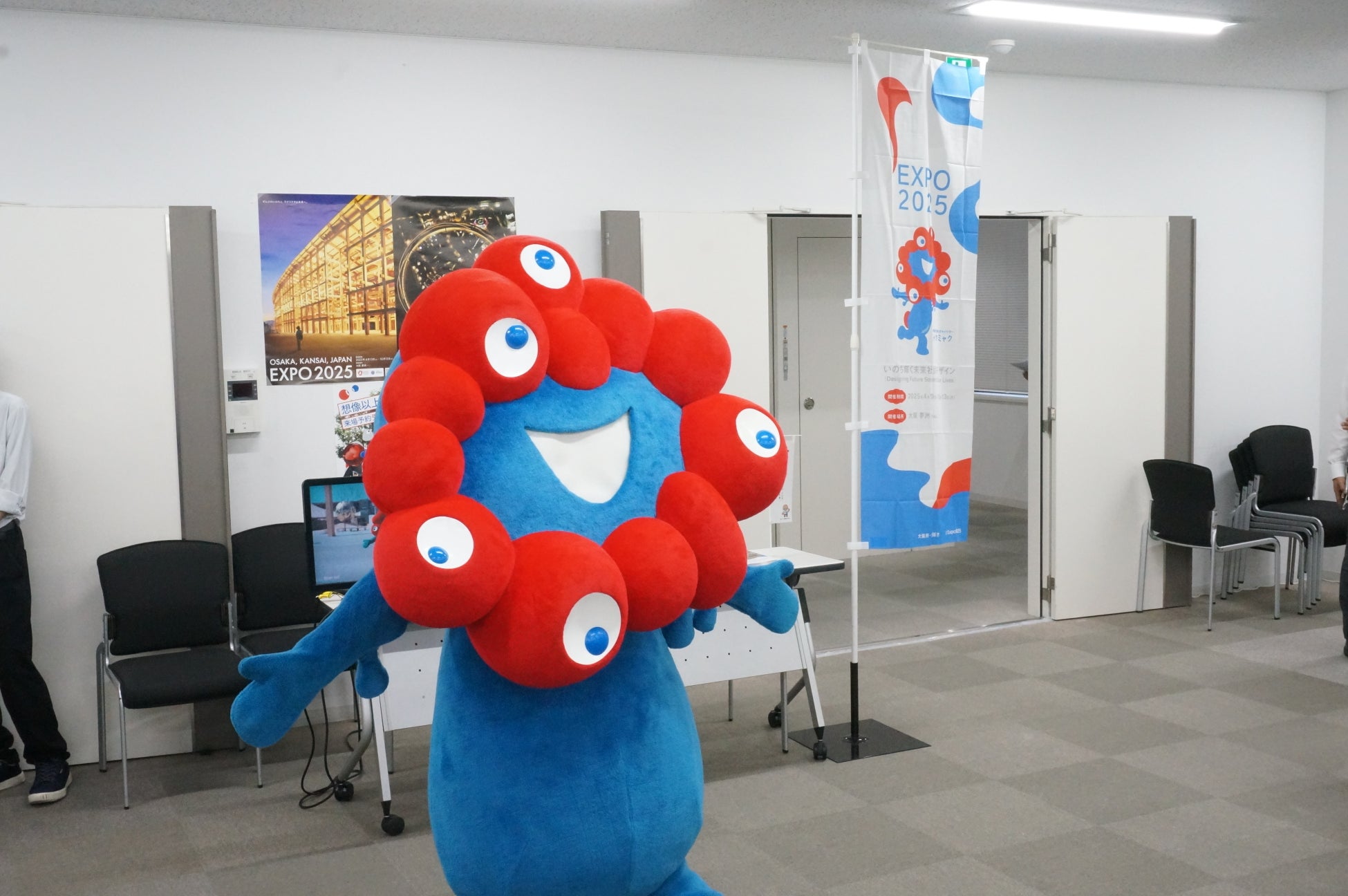 今年は特別に大阪・関西万博に伴い、大阪府福祉部こども家庭局が大阪の子供たちを対象に実施している万博への無料入場券配布に関する案内ブースを設置しました。このPRブースに、2025年大阪・関西万博公式キャラクター「ミャクミャク」が登場し、会場は大いに盛り上がりました。