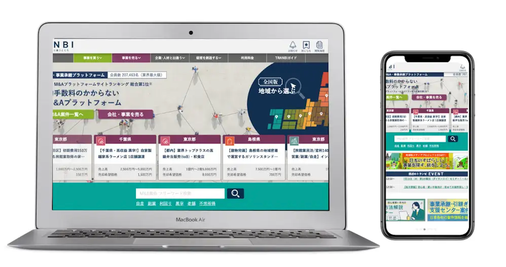 TRANBIには毎日、全国から数多くのM&A案件が公開されており、現在常時交渉可能な案件数は3,000件を超えております。