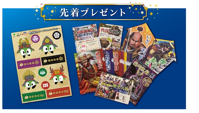 8月9日(金)から配布するリーフレットでクイズ&スタンプラリーにチャレンジ。都営バスの都07、都08及び錦25系統の沿線にある書店に設置した4つのスタンプを集めて、最終スタンプスポット(くまざわ書店アリオ北砂店)のレジカウンターでご提示いただいた方先着700名様に「みんくる×戦国武将コラボシール」または「超ビジュアル !」シリーズグッズをプレゼントします。更に、ご応募いただいた方の中から抽選で50名様に「超ビジュアル !」大事典3点セット、人物伝3点セット、新刊2点セット、西東社おすすめ3点セット、みんくるがまぐちポーチのいずれかをプレゼントします。