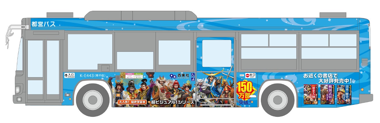 出版物の制作販売を行う株式会社西東社(東京都文京区、代表取締役:若松和紀)は、都バス100周年を迎えた東京都交通局とタイアップして、8月9日(金)から都営バス みんくる×西東社「超ビジュアル !シリーズ」戦国武将クイズ&スタンプラリーを実施します。西東社「超ビジュアル!」シリーズは、美麗イラストや大迫力のCGイラストを用い、楽しく歴史を学ぶことができる累計発行部数150万部を越える人気の児童書です。