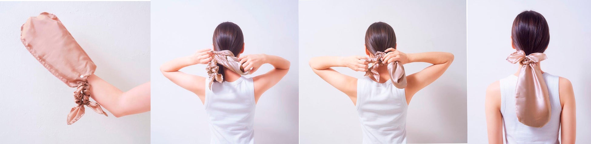 <POINT>髪の量が少ない場合はシュシュを2重にする。