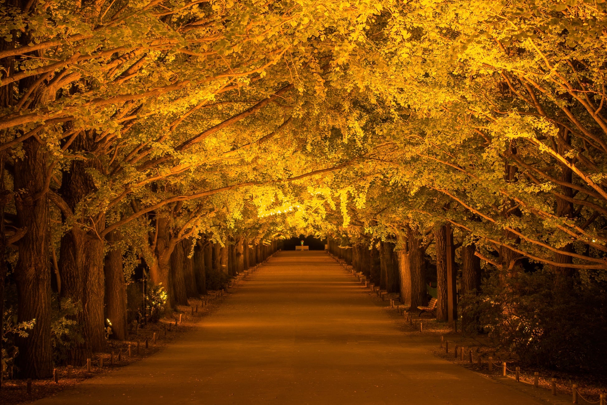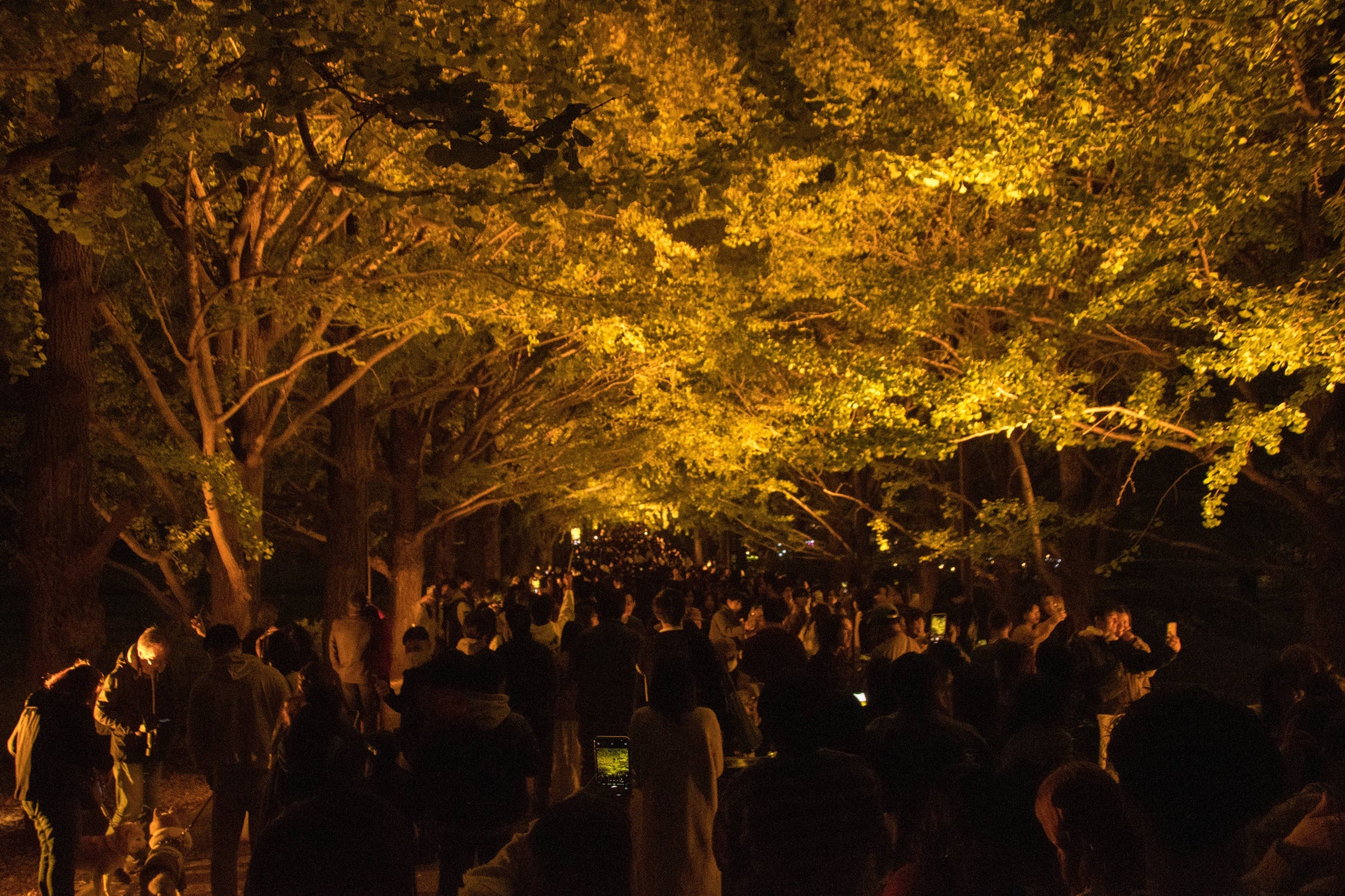 大人気のイチョウ並木や日本庭園のライトアップも継続実施!