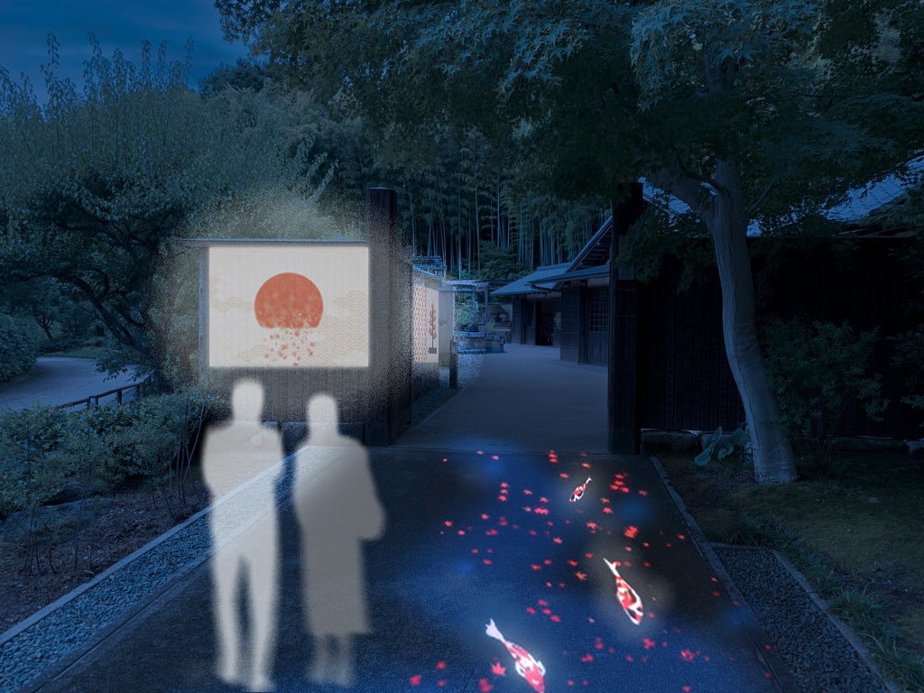 盆栽の良さを引き立てるため、光の色やライティングにもこだわったほか、大型プロジェクターを使ったダイナミックな映像の投影など、日本の伝統文化とデジタル技術の融合にも取り組みました。