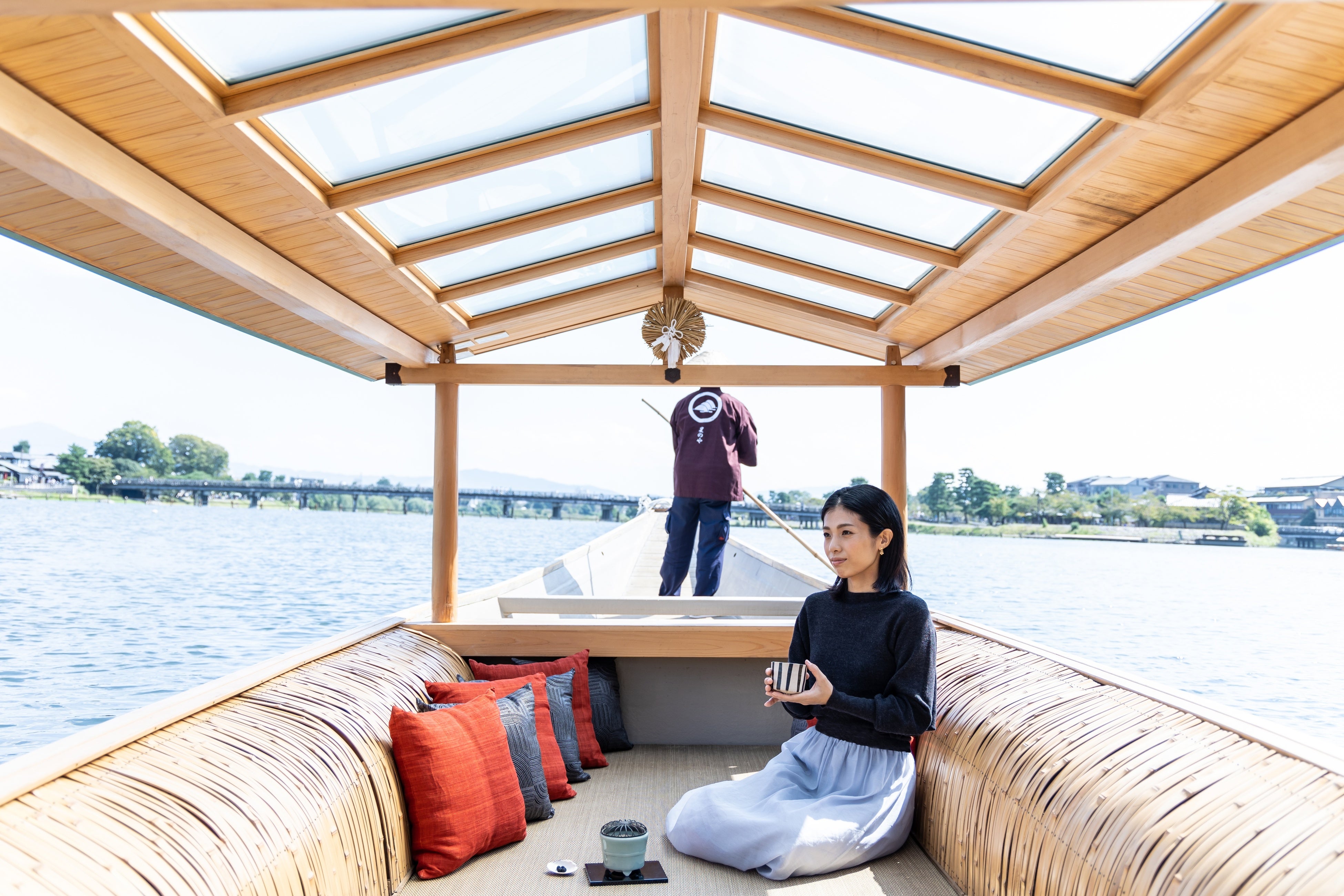 特徴3 星のや京都専用の屋形舟「翡翠」を貸し切り、一服のお茶を楽しむ