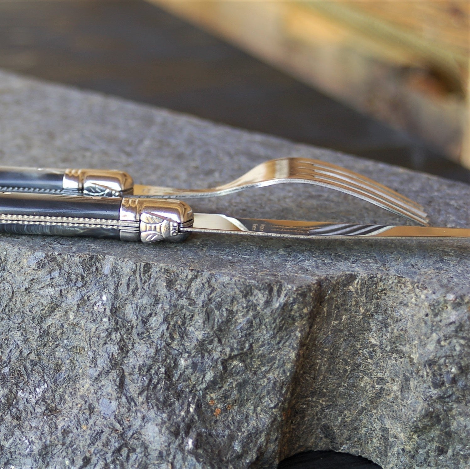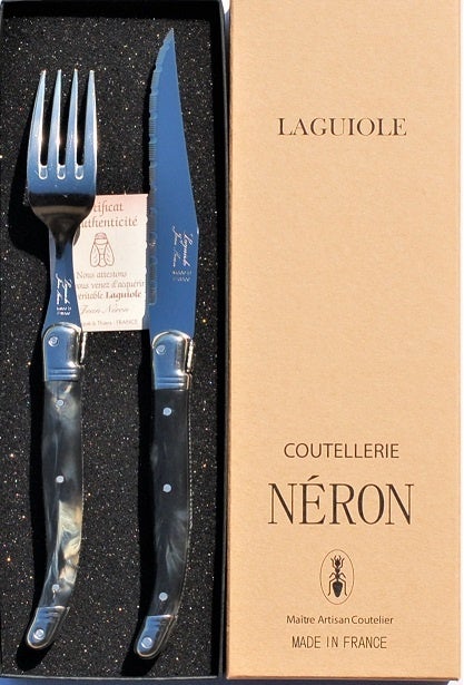 サイバール株式会社は ライヨール ABS ハンドル ステーキナイフ フォークセット 黒大理石風 ギフト箱入り フランス製 NERONの販売を開始しました。