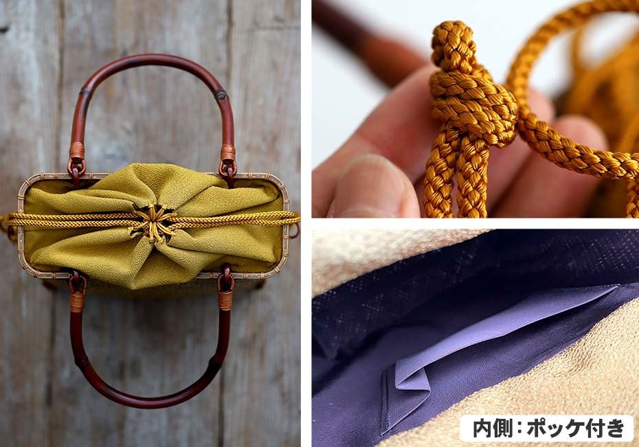 このバッグの魅力は、その繊細な編み目と凛とした佇まいにあります。竹の持つ自然な艶と温かみが、手にした瞬間から特別感を与え、和装はもちろん、洋装スタイルにもすっと溶け込みます。お稽古事やお茶席、結婚式の二次会、ホテルランチなど、フォーマルからカジュアルまで幅広く活用できるデザインです。