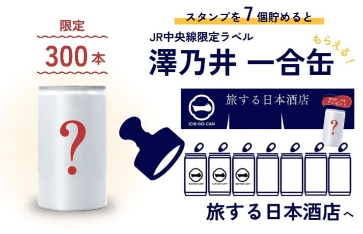 期間中、一合缶を1本お買い上げ毎に、スタンプカードにスタンプを1個押印。7個貯まれば、JR青梅線沢井駅にある小澤酒造の「JR中央線限定ラベル 澤乃井 一合缶」がもれなくもらえます。