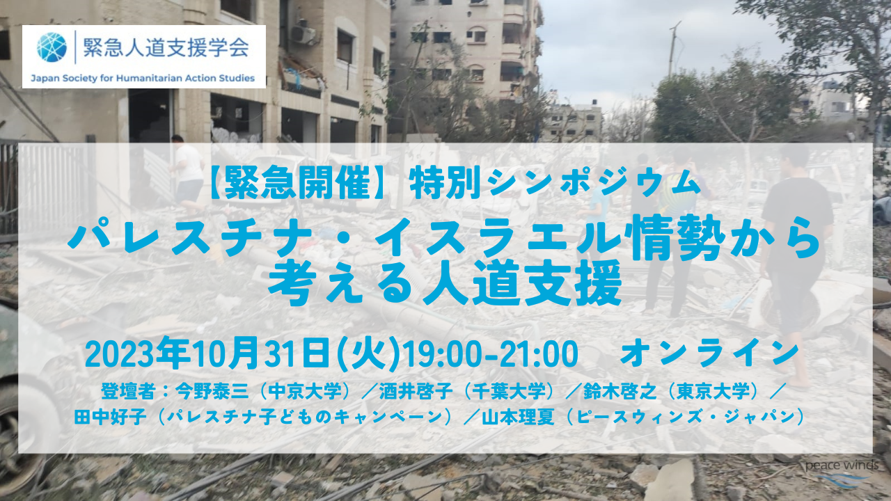 「パレスチナ・イスラエル情勢から考える人道支援」特別シンポジウム(10/31)を緊急開催