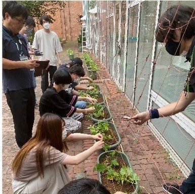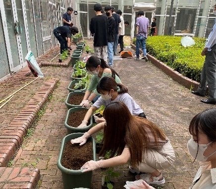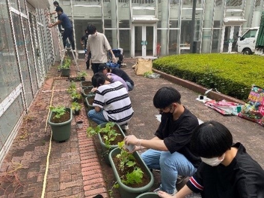 人間学部コミュニケーション社会学科では、都市型社会問題について学びながら、地域社会との関わり方を学習する「まちラボプロジェクト演習」を開講し、今年度は、キャンパスエコロジーに焦点を充てた活動を実施しています。2021年度より実施している「ヒートアイランド現象抑制に関する調査」をよりスケールさせ、また、自分たちがより積極的に環境活動に取り組む姿勢を見せることで、大学全体の環境意識を向上させることを目標に、造園業者と連携し、本郷キャンパス内にグリーンカーテンの設置作業を開始しました。