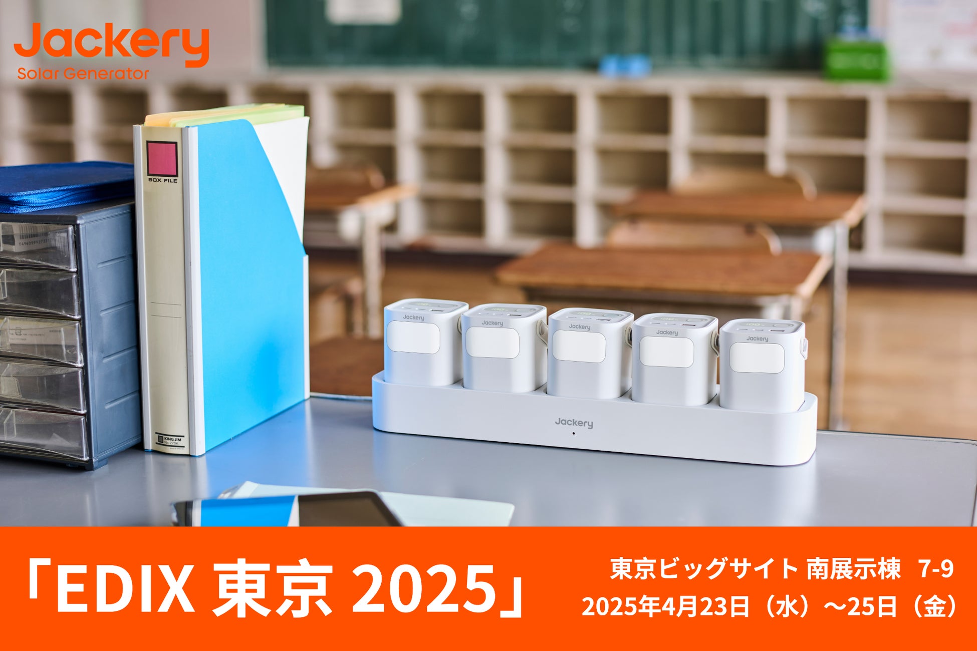 ポータブル電源・ソーラーパネルの世界的リーディングカンパニーJackery Japan株式会社(本社:東京都中央区)は、2025年4月23日(水)~25日(金)に東京ビッグサイト南展示棟で開催される、日本最大級の教育分野専門展示会「EDIX(教育総合展)東京」に、ナガセテクノサービス株式会社と共同で出展いたします。ブースでは、タブレットやPCの使用が拡大する教育現場において課題となっている充電環境の整備に着目し、多数の端末を同時に充電できる学校向けのソリューション「Jackeryパワーバンク&充電ステーション」や、停電時に活躍できるJackeryポータブル電源を展示します。