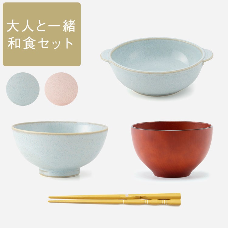 食事の時間が楽しくなってくる5~6歳頃の子どもは、食器なども大人と同じのを使いたくなるもの。性別問わず人気のイエローカラーで、正しい持ち方が身に着く箸、大人が使う食器と同じ見た目の茶碗、小鉢、汁椀を組み合わせました。バランスよく食べる三角食べなども教えやすい、4点セットです。