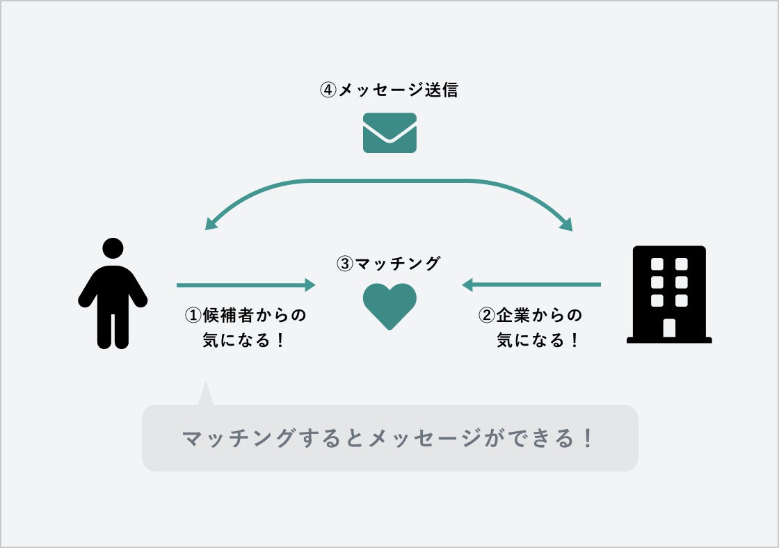Workshipでは、これまで企業と人事双方が「気になる!」を通してアプローチし、お互いに「気になる!」が押された段階でマッチング、メッセージの送信が可能となっていました。