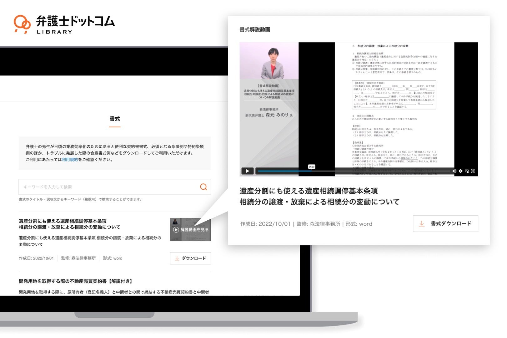 弁護士ドットコム株式会社(東京都港区、代表取締役社長:元榮 太一郎、以下当社)は、弁護士が法律書籍・雑誌を閲覧できるサブスクリプションサービス「弁護士ドットコムLIBRARY」に、書面作成を簡易にする協議書や和解文書等の書式100点と解説動画の提供を開始したことをお知らせします。