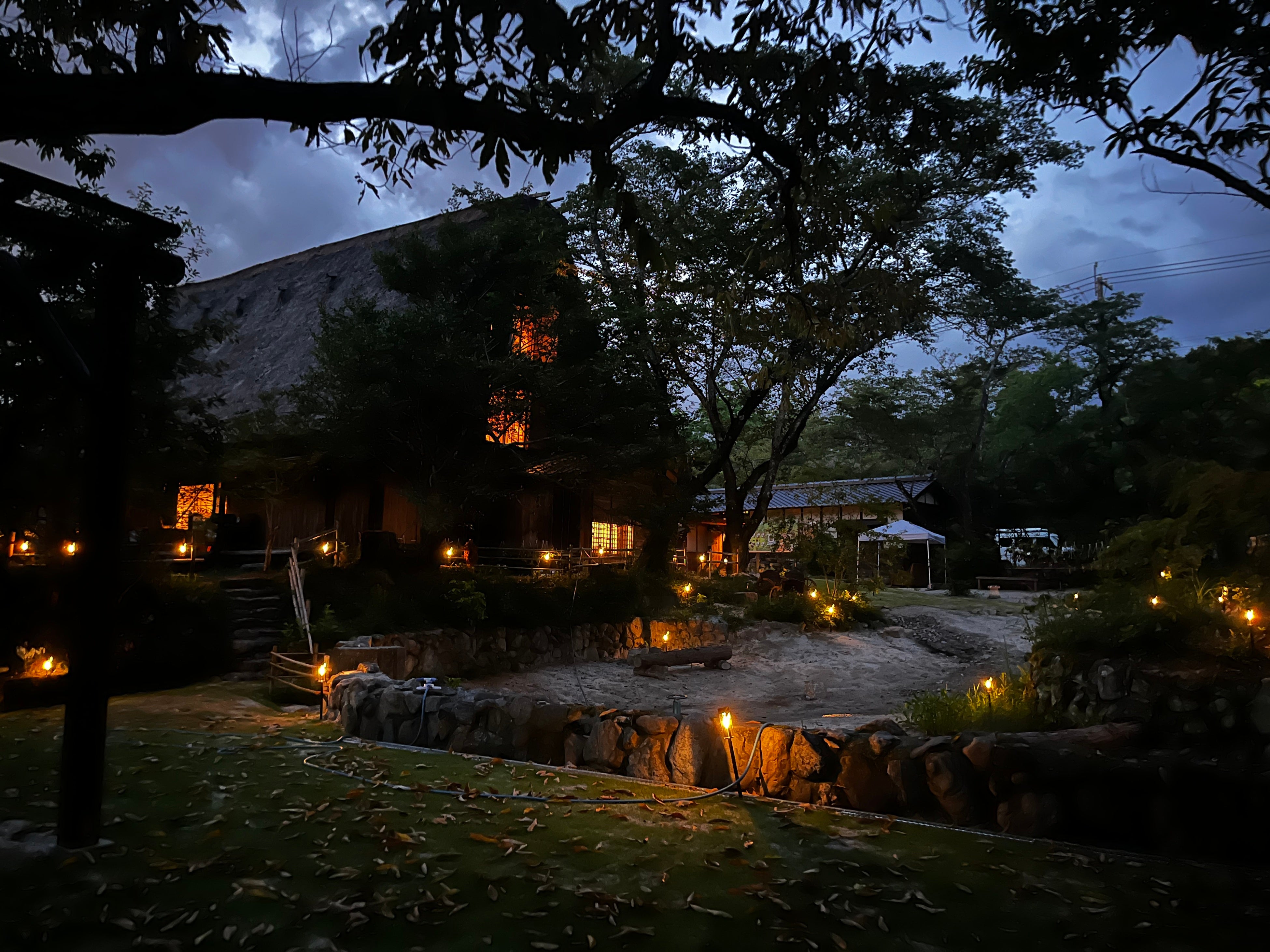 愛知県瀬戸市南山口町に2023年にオープンしたグランピング施設【ウッドデザインパーク瀬戸】には、白川郷から移設された歴史ある合掌作りがシンボルとして存在します。