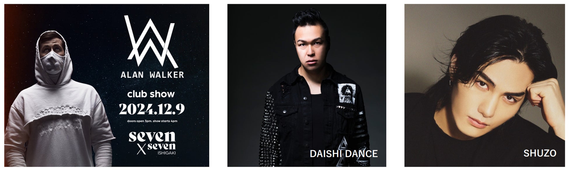 2024年12月9日(月)開催、seven x seven ISHIGAKI feat. Alan Walkerに、「DAISHI DANCE」「SHUZO」の出演が決定。