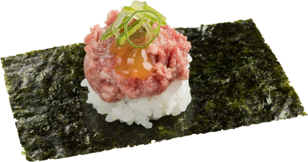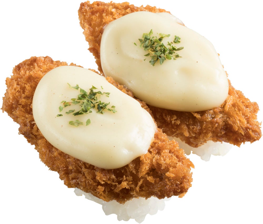 そして、「大とろ生キングサーモン」は、脂がのった腹の部分を店内で切り付けてご提供しており、生のキングサーモンの“大とろ”ならではの脂の甘み、もっちりとした食感を味わうことができます。さらに、びん長まぐろの皮目に近い甘みのある“とろ”の部分のみを厳選した「びんとろ」や、とろっとろにとろける「とろ煮穴子」、新感覚な創作すしの「白身フライのとろ~りチーズフォンデュ」、とろ~っと伸びるお餅天入りの「とろ~りもち天明太うどん」など、脂のり抜群で口の中でとろけるネタの数々や、とろとろ食感の食材を使用した17種類の商品を大集結させました。