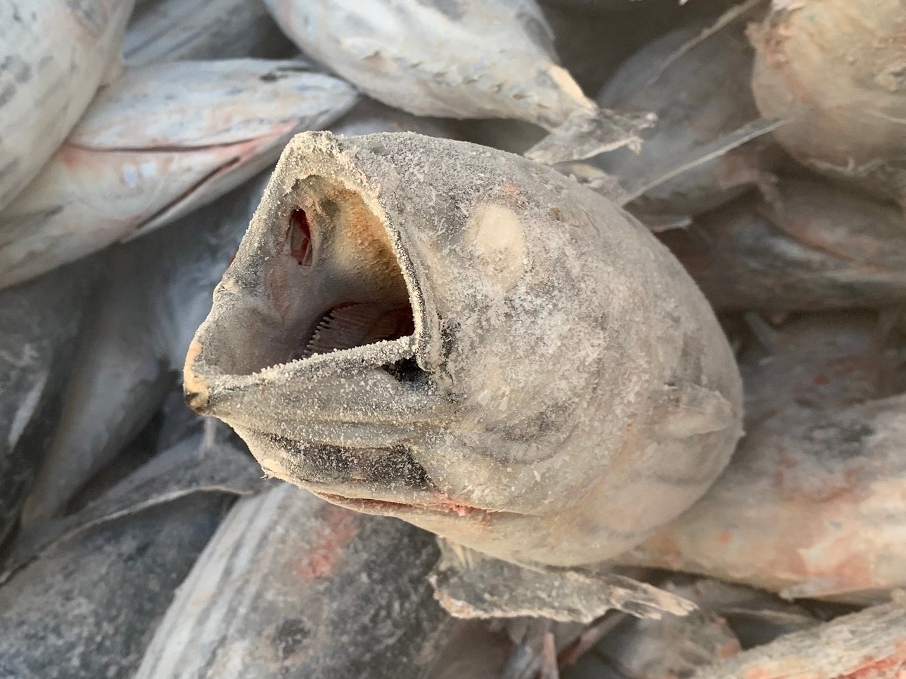 生きたまま鮮度抜群の状態で瞬間凍結されるため口を開けたままになる。