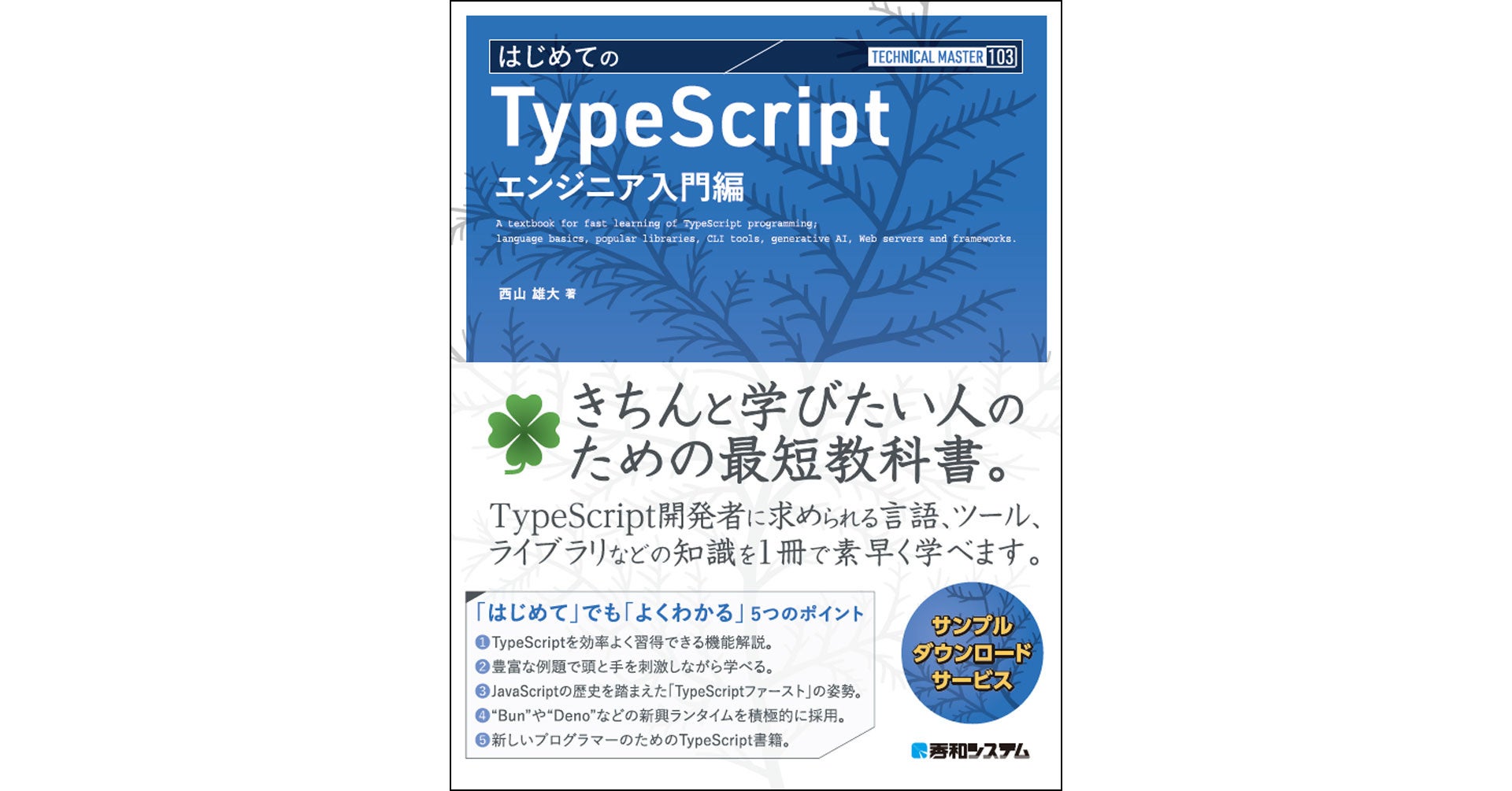 株式会社秀和システム(東京都・代表取締役会長兼社長 上田智一)は、2025年2月4日、新刊『TECHNICAL MASTER はじめてのTypeScript エンジニア入門編』を発刊します。