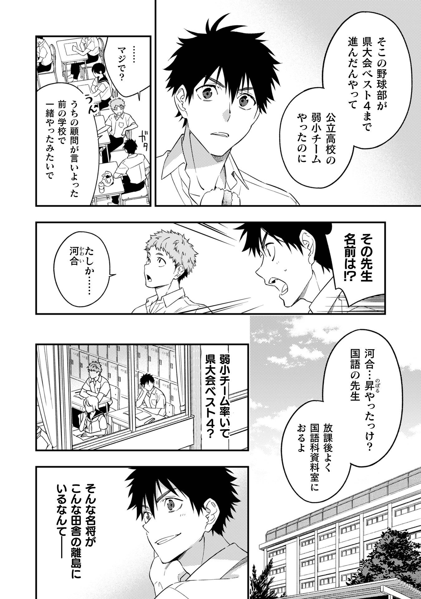 家庭の事情で強豪校から野球部員ゼロの離島に転校してきた少年、豪原陽平。